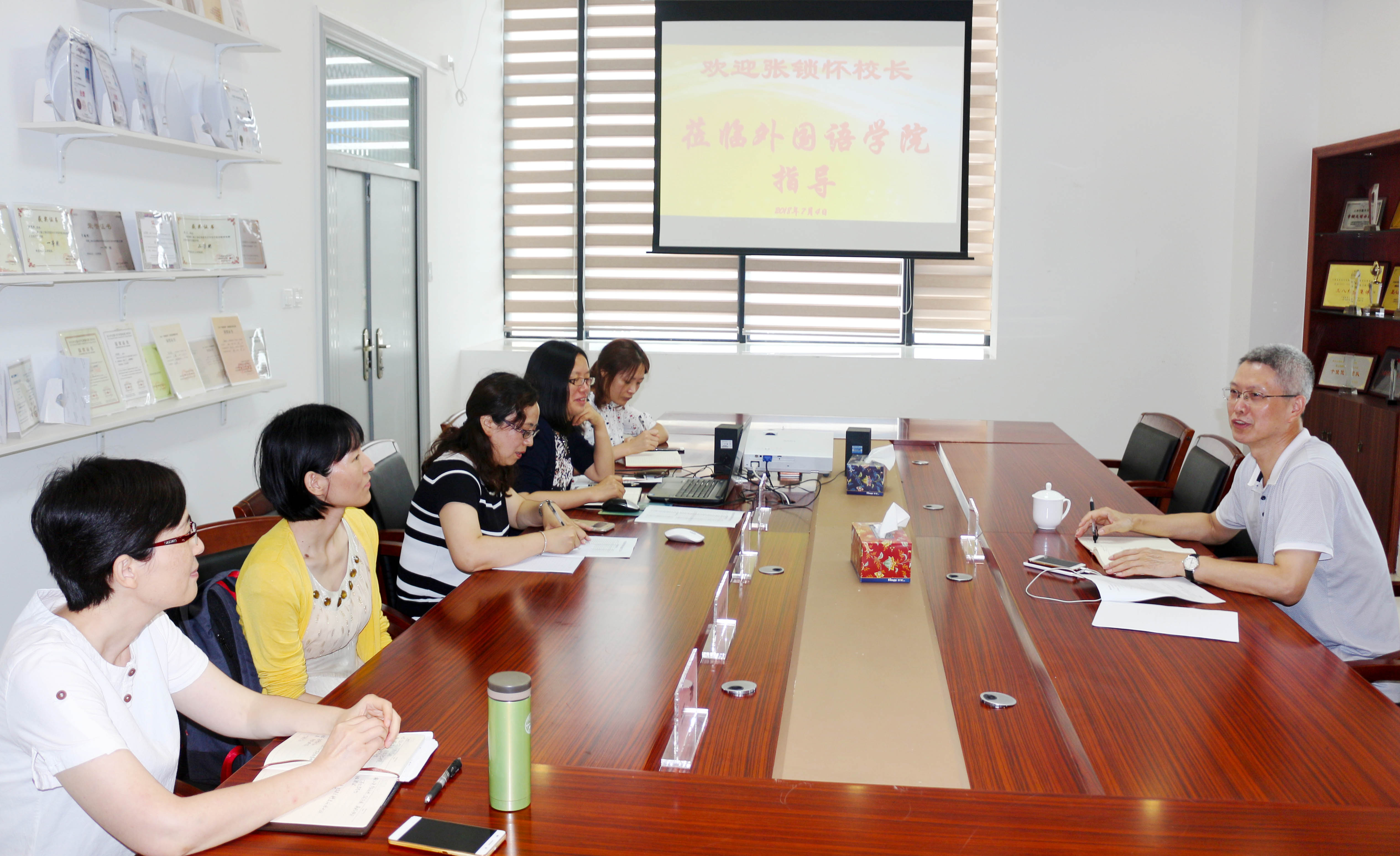 74日,副校长张锁怀莅临我院进行教学工作指导及调研。学院副院长孙志青、副院长于静、应用德语系主任徐林峰、教师代表汪涛及教务秘书方晓延参加了会议。