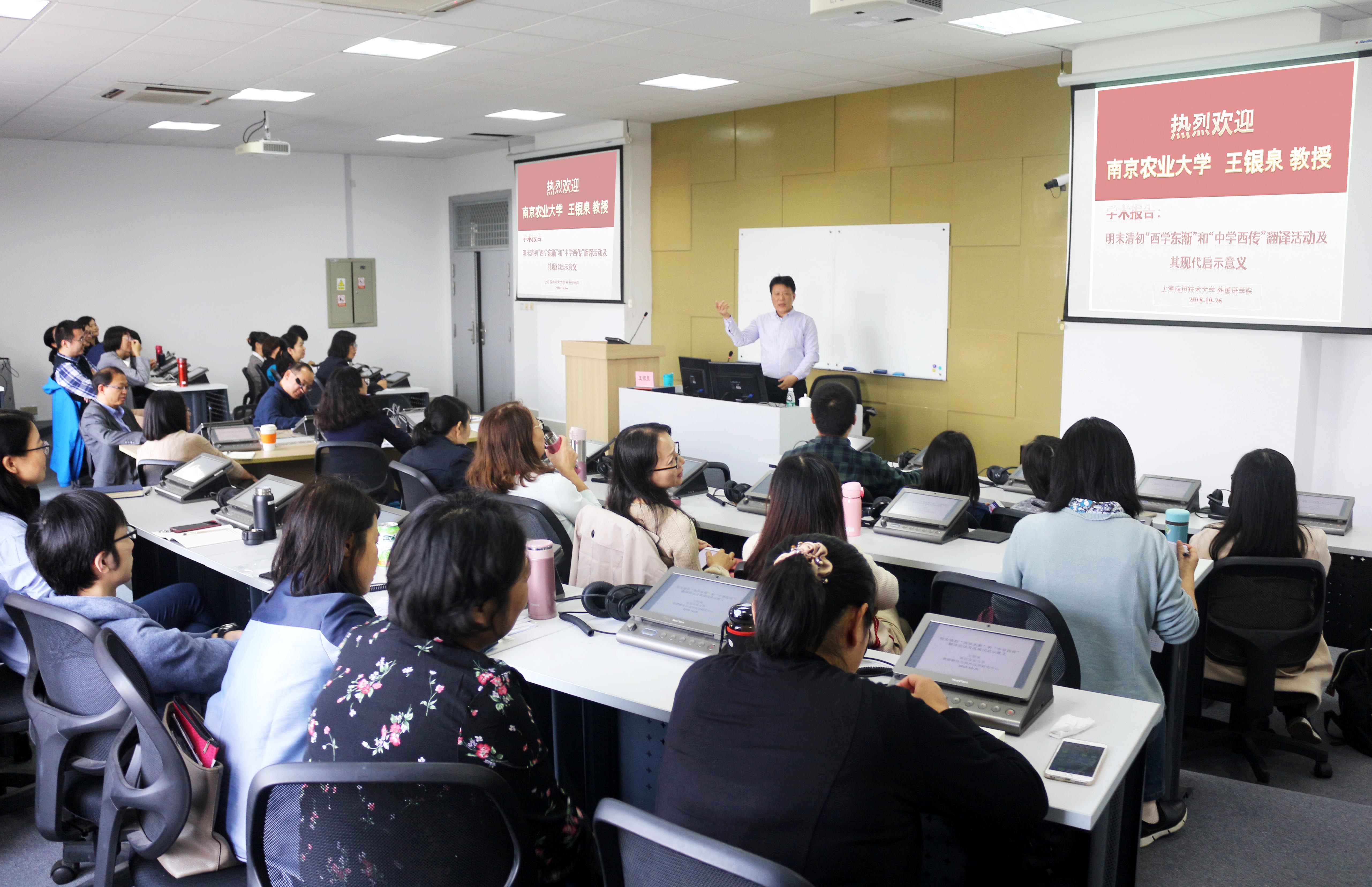 10月26日,学院邀请了南京农业大学典籍翻译与海外汉学研究中心创始主任暨首席专家、南京农业大学外国语学院王银泉教授来院作了一场题为“明末清初‘西学东渐’和‘中学西传’翻译活动及其现代启示意义”的精彩学术讲座。讲座由副院长于静主持,院长陈家旭,副院长孙志青以及部分师生参加了报告会。