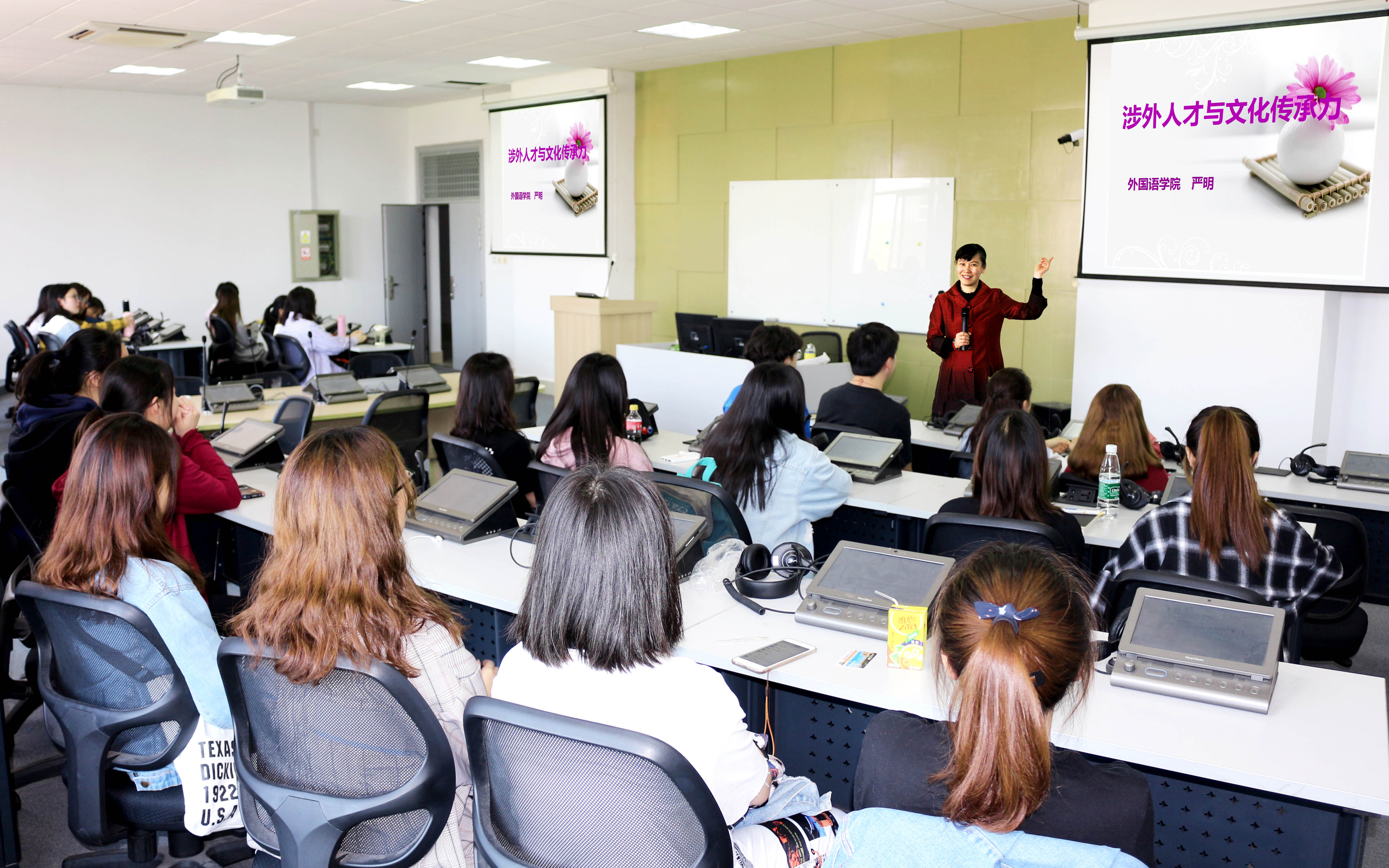 “六十五载沧桑砥砺,造就不尽辉煌荣光”,为庆祝学校六十五周年校庆,学校举办了系列高端论坛、展览、学术活动。4月18日,我院严明教授在第五学科楼B309为学院师生作了题为“涉外人才文化传承力”的迎校庆学术讲座,我院专业学生及部分教师聆听了讲座。