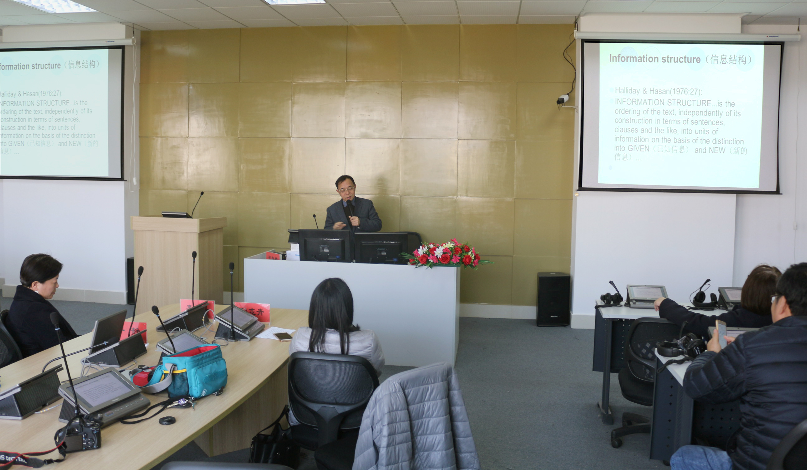 讲座中,张教授深入浅出地介绍了韩礼德的英语衔接理论和英汉对比研究领域的相关成果,及其对翻译实践的指导意义,相关结论对英语写作也具有同样的启示意义。张教授还与在座教师交流了目前翻译研究中的共性问题,并就翻译学科方面的教学、科研及翻译实践等问题为大家答疑解惑。李晓晶书记对讲座进行了总结,她指出张教授的讲座对于进一步推动外国语学院学科建设很有助益,为外院教师的学术研究,特别是在翻译方向上找到自身发展同学院建设相融合的契合点指明了方向,极具启发意义。