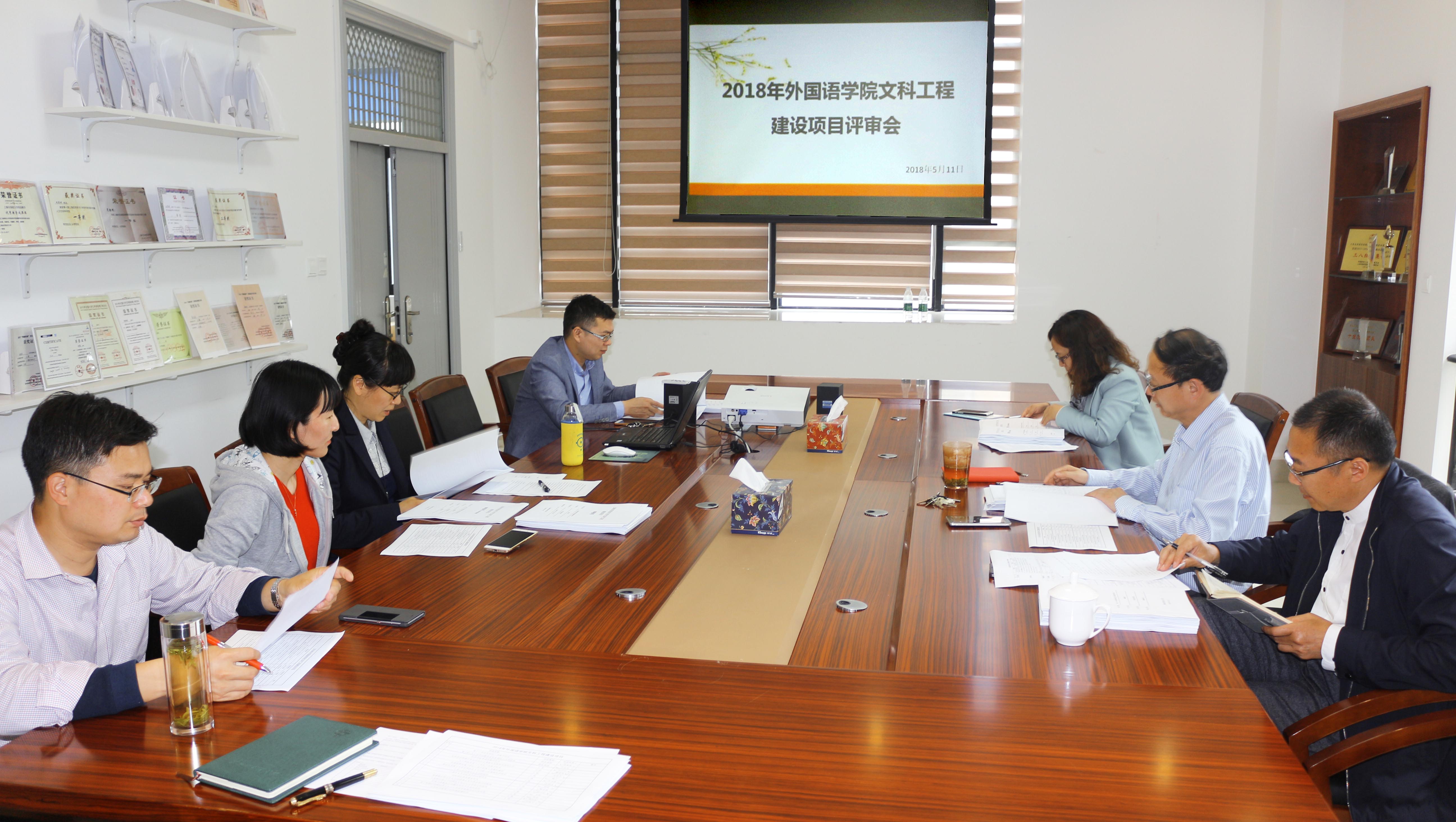 为提升外语学科发展水平,根据学校文科工程建设精神,外国语学院于5月11日召开了2018年文科工程建设项目评审会,陈家旭院长领衔的外国语学院学科建设委员会成员和学校学科建设办公室副主任黄俊革教授参加了评审会。