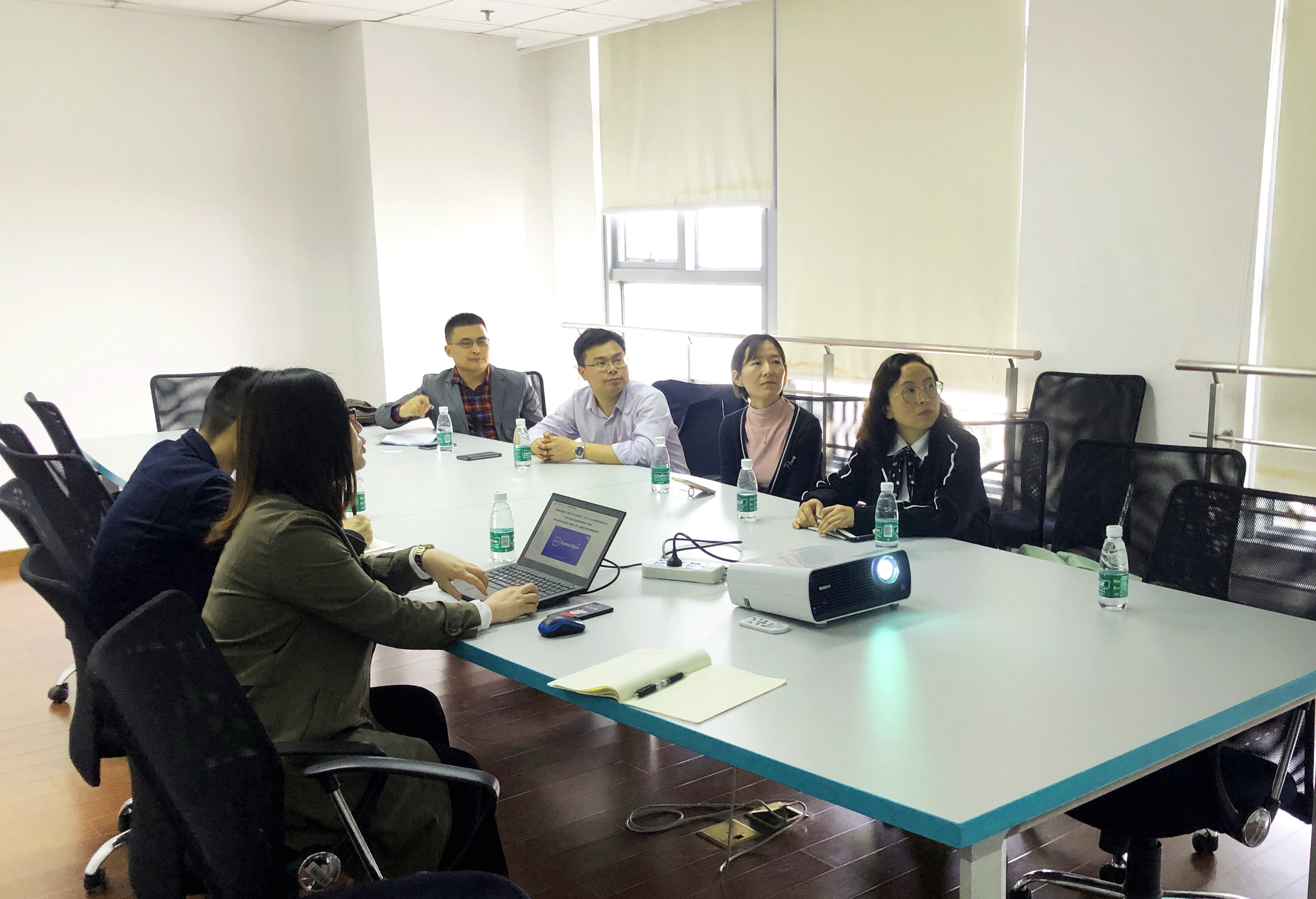 上海一者信息科技有限公司总经理张井等热情接待了学院一行并进行了座谈,介绍了一者信息科技有限公司在翻译技术领域的发展历史和成果,分享了公司翻译技术产品研发与技术创新的相关情况,对于学生实习和就业提出了建设性意见。于静等简要介绍了学院学科发展和人才培养情况,双方就学生实习实践、校企合作、翻译语料库建设等问题进行了沟通。