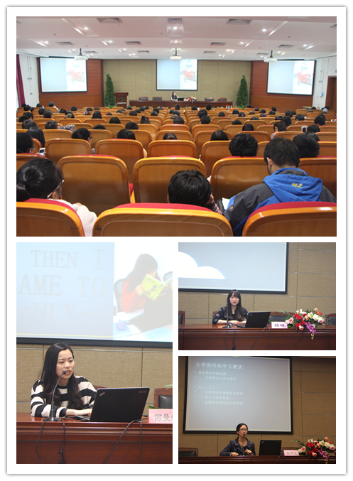 415日下午,外国语学院于图书馆B101开展“优秀校友分享职场经验”讲座。往届优秀学姐何曼婷、杨琳、张梦涵受邀出席本次讲座并担任主讲人,各级同学参加此次讲座。
