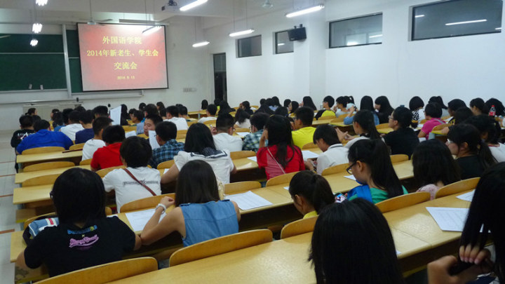 9月15日晚,外国语学院在二教E101成功举办了新老生交流会。外国语学院团总支书记、新生辅导员汪春柳老师、学生会主席团及部长级成员、新生小导员及全体14级新生参加了此次活动。
