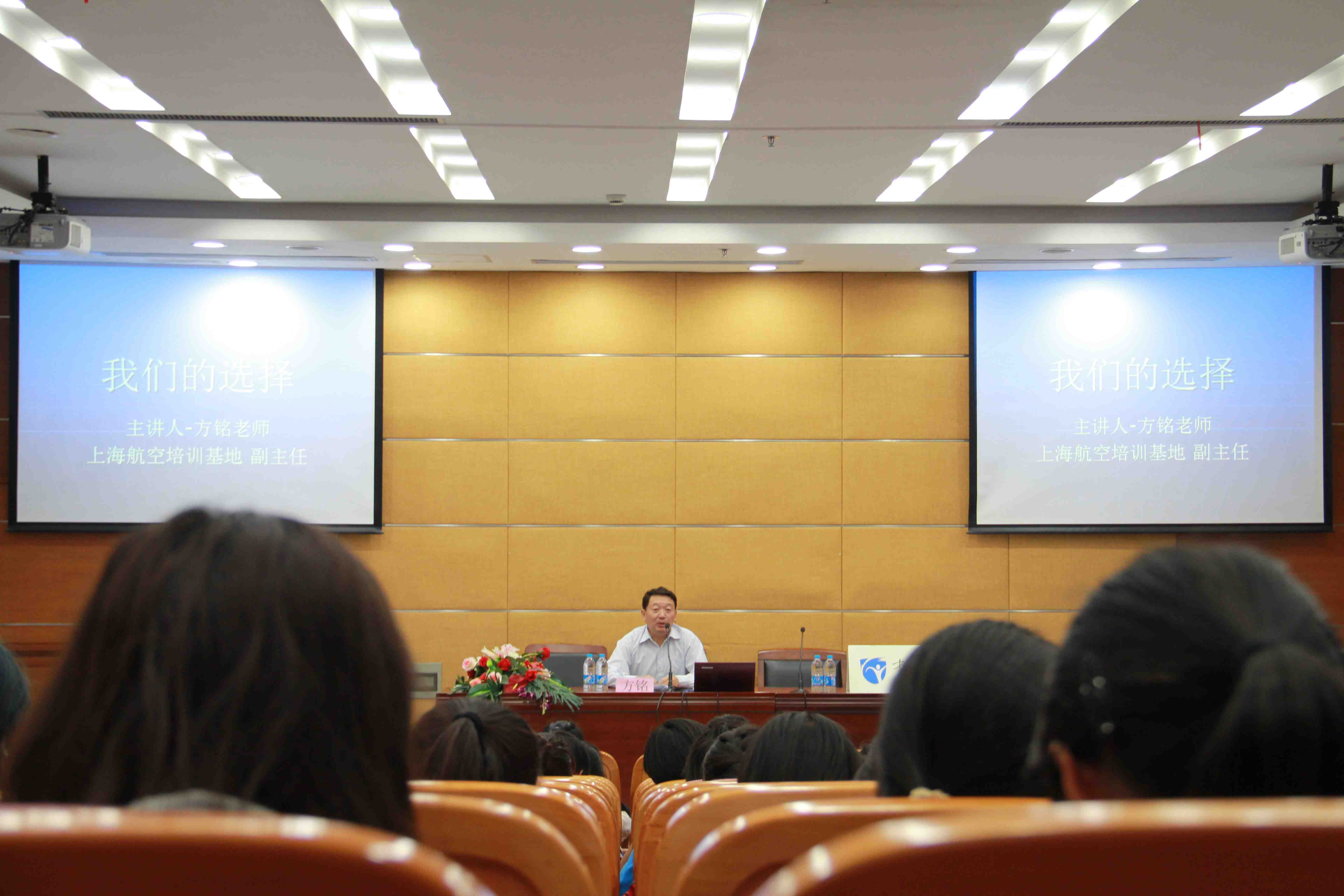 2013年9月26日下午三点,外国语学院本学年第一场“才聚语海”天天讲活动在图书馆B102召开。本场讲座特邀原上海应用技术学院工会主席、现上海航空培训基地副主任方铭老师给同学们带来了一场主题为“我们的选择”的精彩讲座。