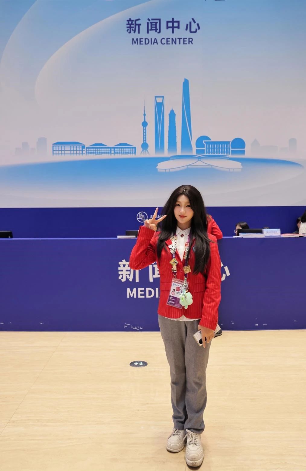 冯楚然专业班级:2022级德语2班政治面貌:共青团员服务岗位:新闻中心个人感悟:一个个色彩斑斓的青春梦想,在不舍寸功中开花结果,在日夜坚守中可感可及。我的小叶子的故事是从出征仪式开篇的,从我接到要为出征仪式排一个舞蹈快闪开始。也正因如此,我更是对我们的主题曲《年轻的力量》非常的熟悉,因此第一天刚进场馆听到如此熟悉的音乐就拥有了归属感。于是,继续到了新闻中心,故事便正式展开了。开幕式第一天,是大家起的最早的一天,甚至凌晨两点半就已经起床了。披着星光带着露水,天不亮就到了新闻中心。我在booking接待记者,遇到了来自不同国家的国际友人,引导他们到采访室,到收录室,他们闲暇等待时我会英语和他们聊天,甚至教他们中文,氛围非常融洽。这一刻,“新时代,共享未来”的意义开始具象化。等忙完一切,我才看到虹桥天际线缓缓升起的朝阳,像浸了玫瑰酒那般,洒落在我们每一个人身上。自那以后,每一天虽然都披星戴月,但是只要大家上岗,就会具备满满的活力,或许是因为天上的星星还亮不过我们的眼睛吧。在这期间,收获了许多爱——有老师们的悉心关注,同学的互相照顾,更是遇到了许许多多有趣的灵魂,其中有记者,有摄像,有保安,有主持,有来自全球各地不同种族不同语言的在各个领域发光发热的伙伴。我们一起吃饭,一起聊天,会有贴心的记者来主动给我们送零食,还会有各种补给与学校的慰问让我们心里暖暖的。最后回来的路上,我们大家在车上一起唱歌,那时候我真想把时间停在这一刻!最后回校特别感动学校为我们准备的惊喜!一下车就有同学为我们送花,为我们欢呼,感觉世界都明亮了。结束那天恰好是我校留学生邓涛的生日,我们一起吃蛋糕唱生日歌,我想起他在车上为大家唱的中文歌曲童话里的歌词,在此作为结尾:“幸福和快乐是结局。”