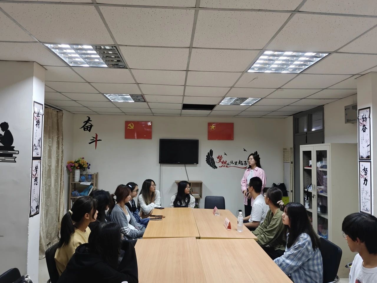 为庆祝中华人民共和国成立75周年,外国语学院团委联合15号社区工作站、外国语学院易班工作分站,开展“胸怀强国志,礼赞新中国”庆祝新中国成立75周年系列活动。10月13日,外国语学院在15号社区成功举办“我与祖国共成长”主题分享会,是此次系列活动的首场线下分享活动。活动荣幸邀请到21级德语专业刘嘉豪学长与23级英语专业王乐荻学姐分享与祖国共成长的经历与感悟,他们围绕思想、学习、学生工作、社会实践等方面,与在场同学分享了自己的经历和见解,活动由新生辅导员刘靖雯老师主持。