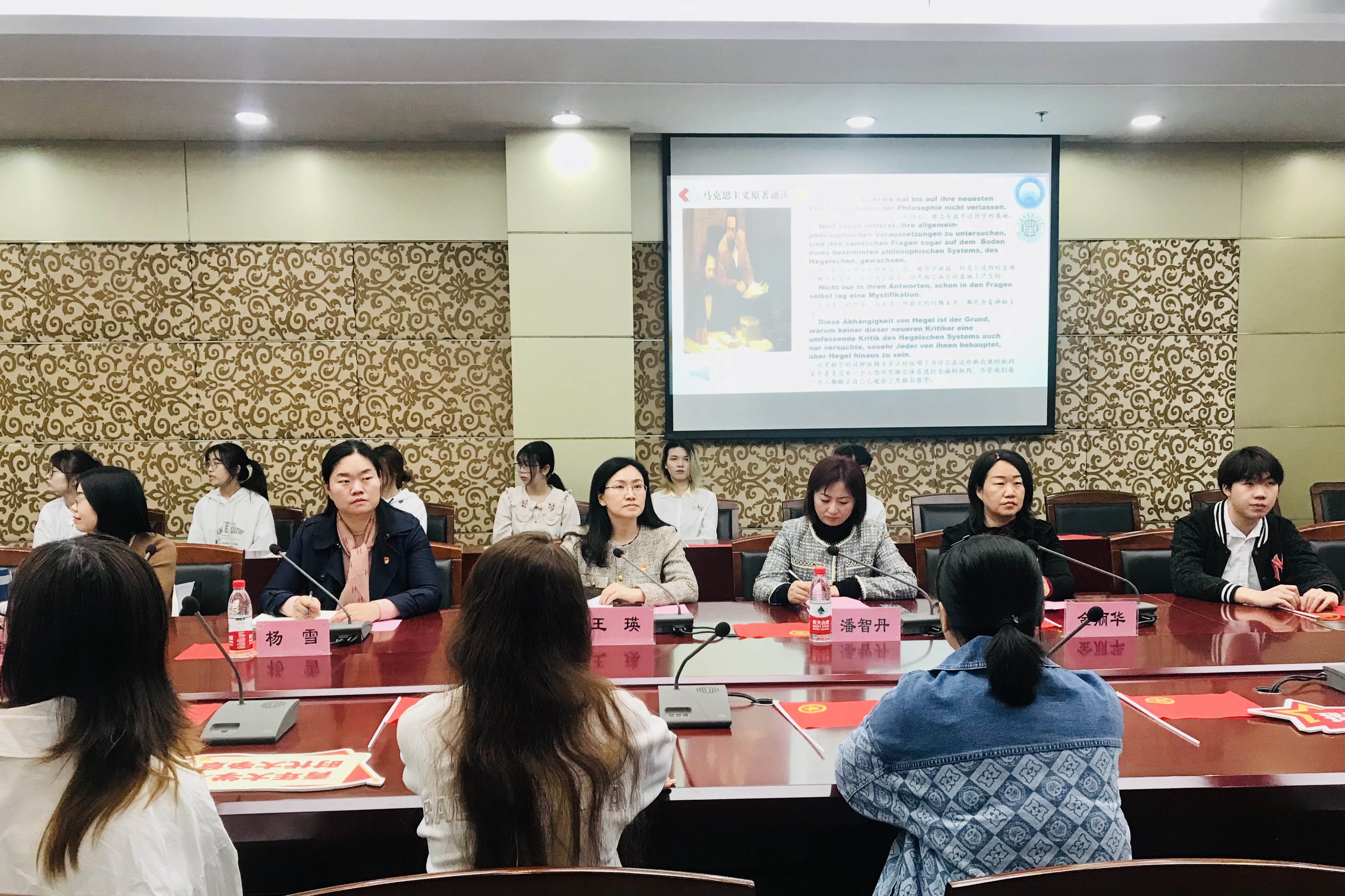 校党委副书记、副校长王瑛出席外国语学院22111212团支部五四主题团日活动,和同学们一起唱团歌、重温入团誓词,共同深入学习党的二十大报告中关于构建人类命运共同体的论述。她认真聆听了经典原著(摘选)的中德双语朗诵和马克思名句(精选)中德双语诵读,外国语学院优秀教师代表李锐老师以陈望道“追求真理的故事”为例,对同学们寄语。最后,王瑛对在场的青年学生们提出了希望和要求,一是要抓紧理论学习、保持家国情怀。青年学生要坚定青春理想信念,把成就青春梦想和实现中国梦紧密联系在一起。二是要与上应同行,筑牢专业品牌特色,用外语讲好中国故事,提高专业素养。学校的快速发展和取得的成果需要广大青年学生同向同行。三是要善于学习,向老师、向书本、向实践学习,要培养家国情怀,练就过硬本领。要尽早明确未来发展方向,要早立志、立大志,要意气风发地朝着第二个百年奋斗目标,做出青年团员应有的新贡献。
