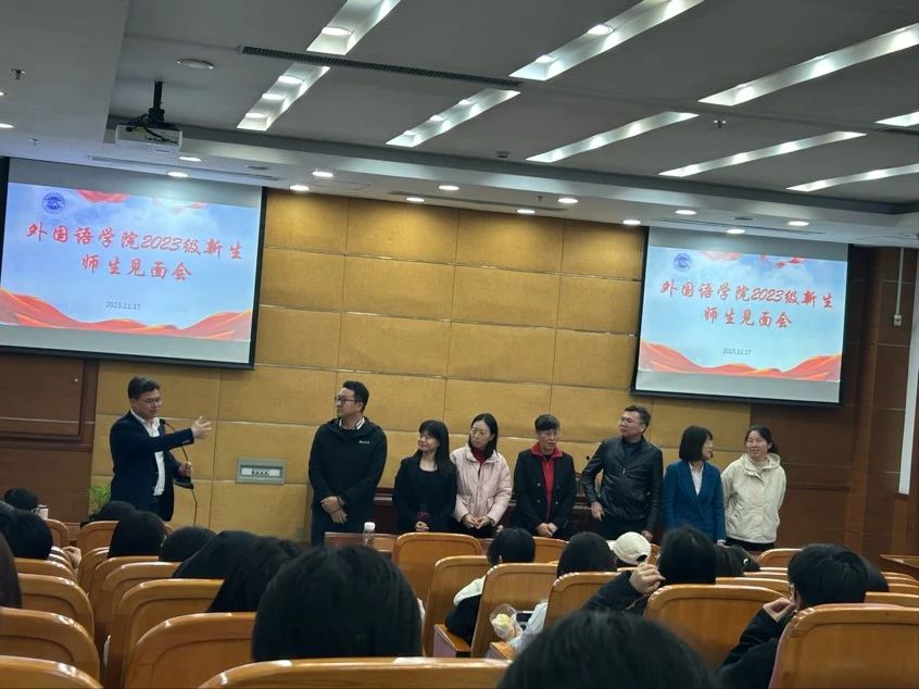 11月17日12:40,外国语学院2023级新生师生见面会在图书馆B102举行。外国语学院全院专业老师、新生辅导员和2023级全体新生参加了本次见面会。见面会由外国语学院新生辅导员王福主持。