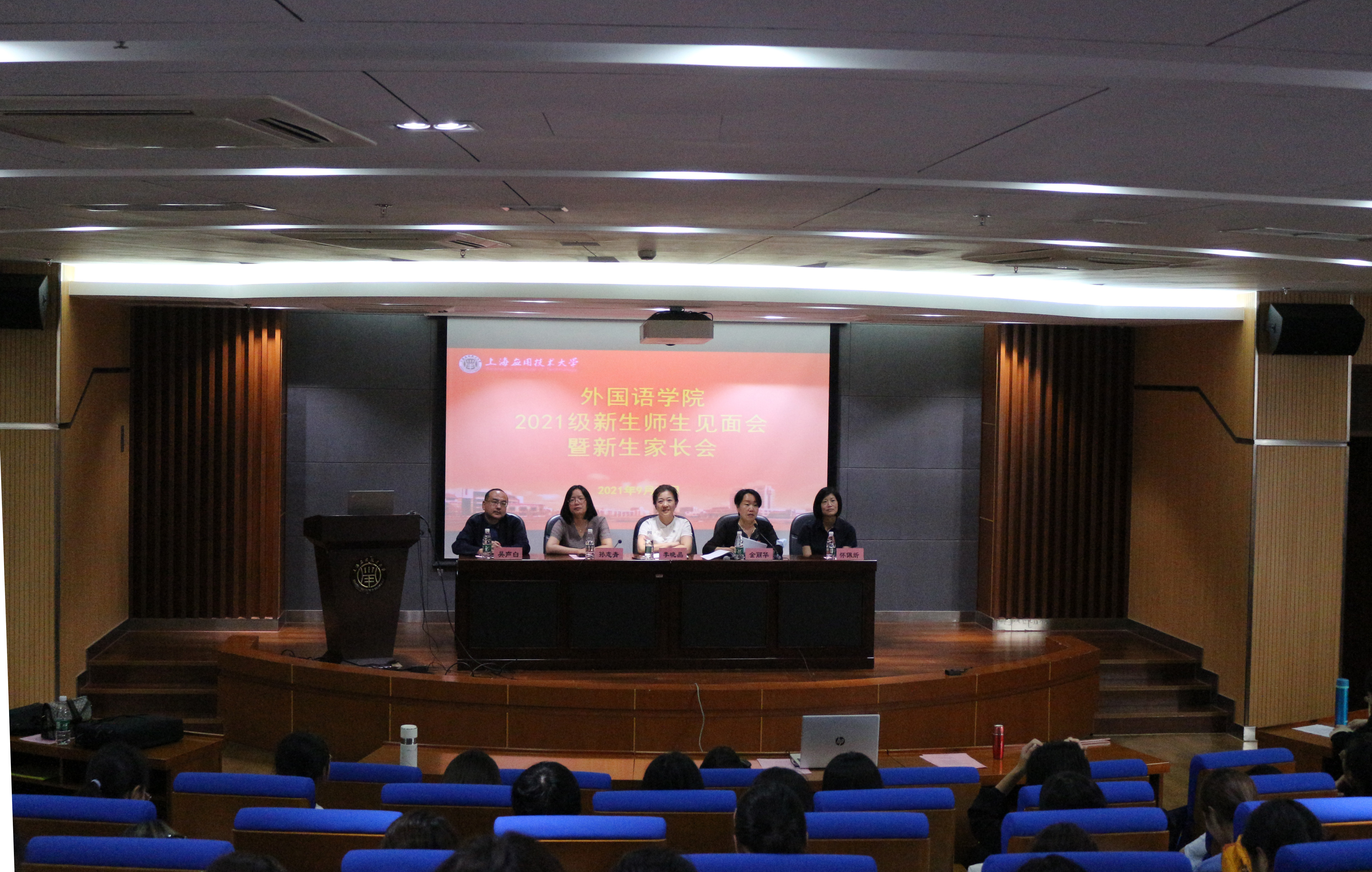 924日下午,外国语学院在奉贤校区第六学科楼B210报告厅采用“线上+线下”的形式召开了2021级新生师生见面会暨新生家长会。外国语学院党总支书记李晓晶,党总支副书记、副院长金丽华,副院长孙志青,应用英语系、应用德语系、翻译中心、实验中心全体教师,老生代表,2021级新生及全体家长参加会议。