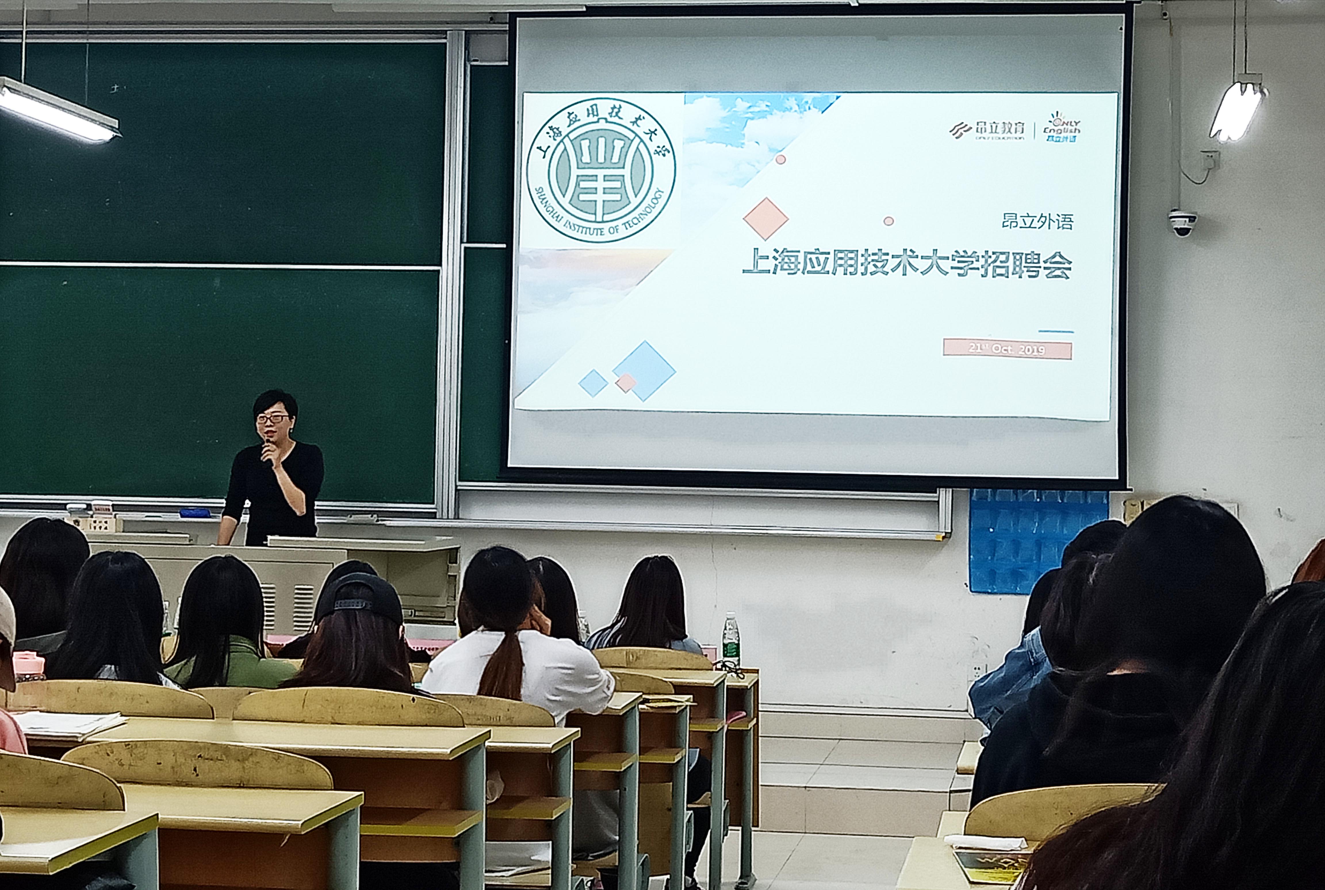 10月21日,学院在第二教学楼G103举行了2020届毕业生专场招聘会,2020届全体毕业生参加。本次招聘会邀请了上海富国太平洋贸易有限公司、上海昂立教育培训有限公司、上海艺巢信息技术有限公司、申慧签证中心、上海学而思教育培训有限公司以及上海吉的堡教育信息咨询有限公司来校做招聘宣讲。通过播放宣传片、PPT展示、面对面交流等方式,各招聘单位向我院毕业生展示了各自企业的特色以及在此次招聘会中的职位需求。此次招聘会让毕业生了解到了当前的就业形势,也让他们获得了一定的面试技巧,就业招聘会圆满结束。