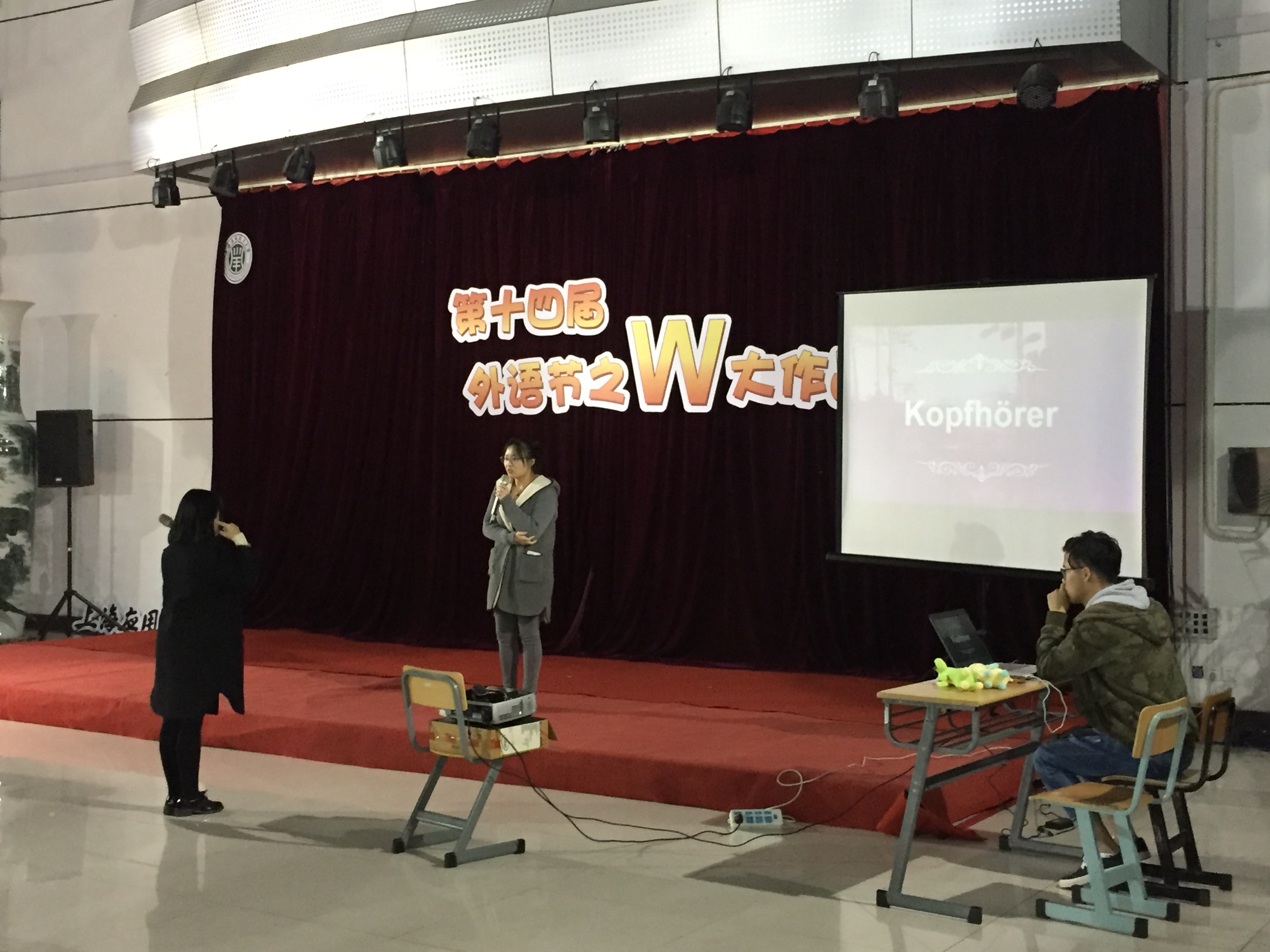 1116日晚,外国语学院于大学生活动中心底楼举行第十四届外语节之英德“W”大作战。此次比赛由外国语学院英语社和德语社共同举办,外国语学院迟娟老师、徐林峰老师和Justus老师担任本次比赛评委