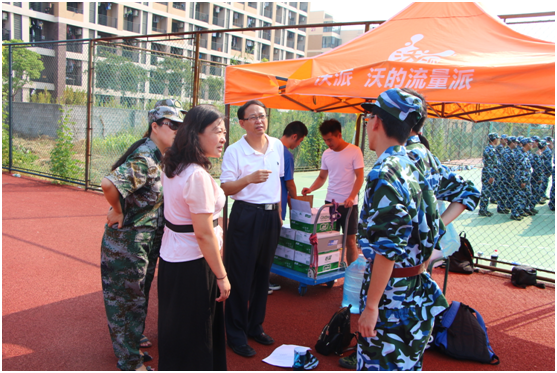 92日,外国语学院院长陈家旭、外国语学院党总支书记李晓晶以及副书记、副院长金丽华亲临现场慰问2016级新生军训工作各位同学和教官,并为辛苦训练中他们送水,给炎炎夏日训练的学子们带来一丝清凉。
