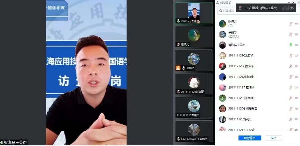 随后,携程国际业务服务团队HR经理邱凯详细介绍了品牌情况、品牌分布、事业部结构以及招聘岗位需求,他指出良好的外语能力是携程国际业务服务部工作的基础。CGP集团华东区校园招聘负责人崔鹏浩详细介绍了CGP集团发展历程,展示了集团职业发展空间、培训课程、员工福利、面试流程,特别就猎头顾问管培生这一岗位进行了充分的解释与说明。上海我娃我教科技有限公司办公室主任王英杰介绍了公司的创立及发展情况。他表示公司为员工提供了优质的职位晋升空间,他真诚地希望同学们把握形势,抓住机会,发挥专业所长,踏实步入职业生涯。