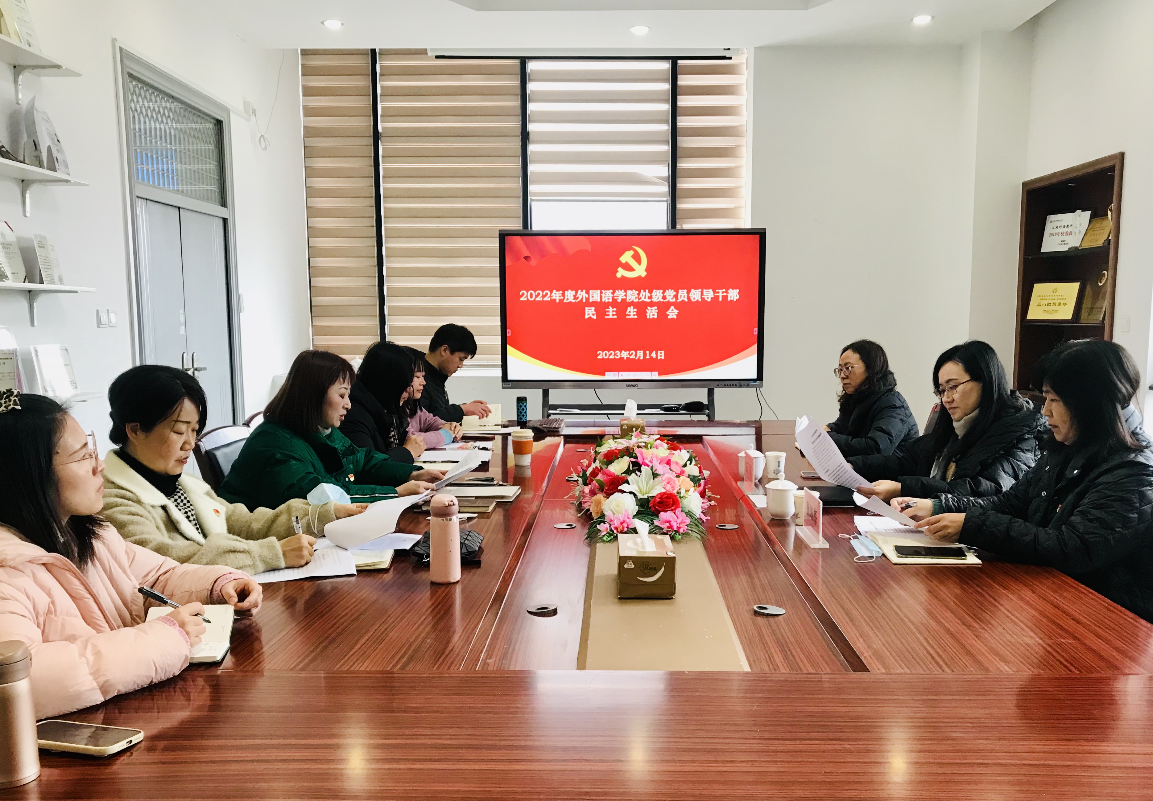 按照学校党委统一部署,2月14日下午,外国语学院在第五学科楼B213组织召开了2022年度处级党员领导干部民主生活会,校党委副书记、副校长王瑛到会指导并讲话,校工会常务副主席张淑梅、外国语学院领导班子成员、教师代表参加了会议。会议由外国语学院院长潘智丹主持。
