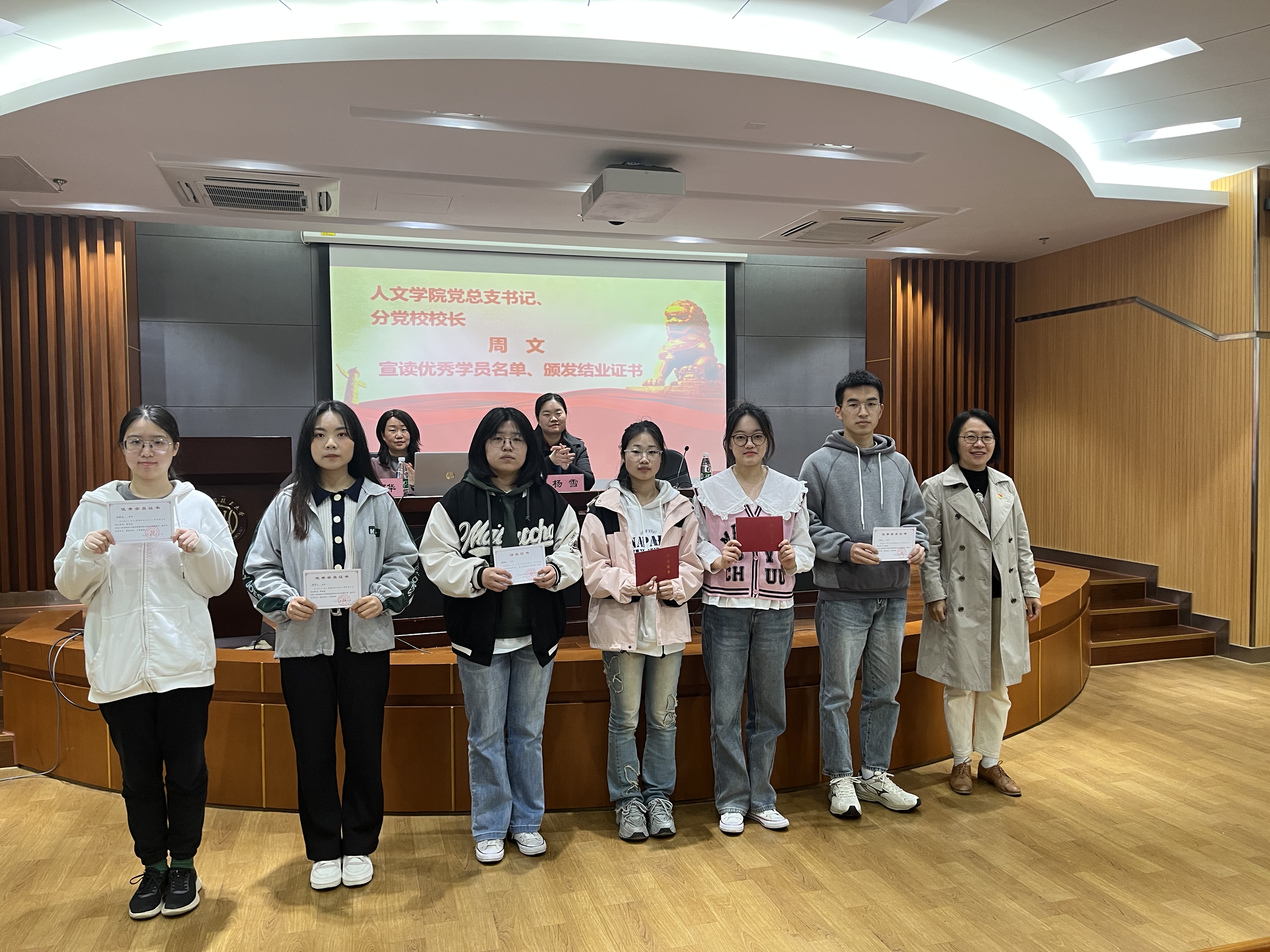 4月7日下午,由外国语学院与人文学院联合举办的第45期初级党校分党校结业仪式在第六学科楼B210报告厅举行。外国语学院党总支书记、分党校校长杨雪,人文学院党总支书记、分党校校长周文出席典礼。结业仪式由外国语学院副书记、副院长,分党校副校长金丽华主持。