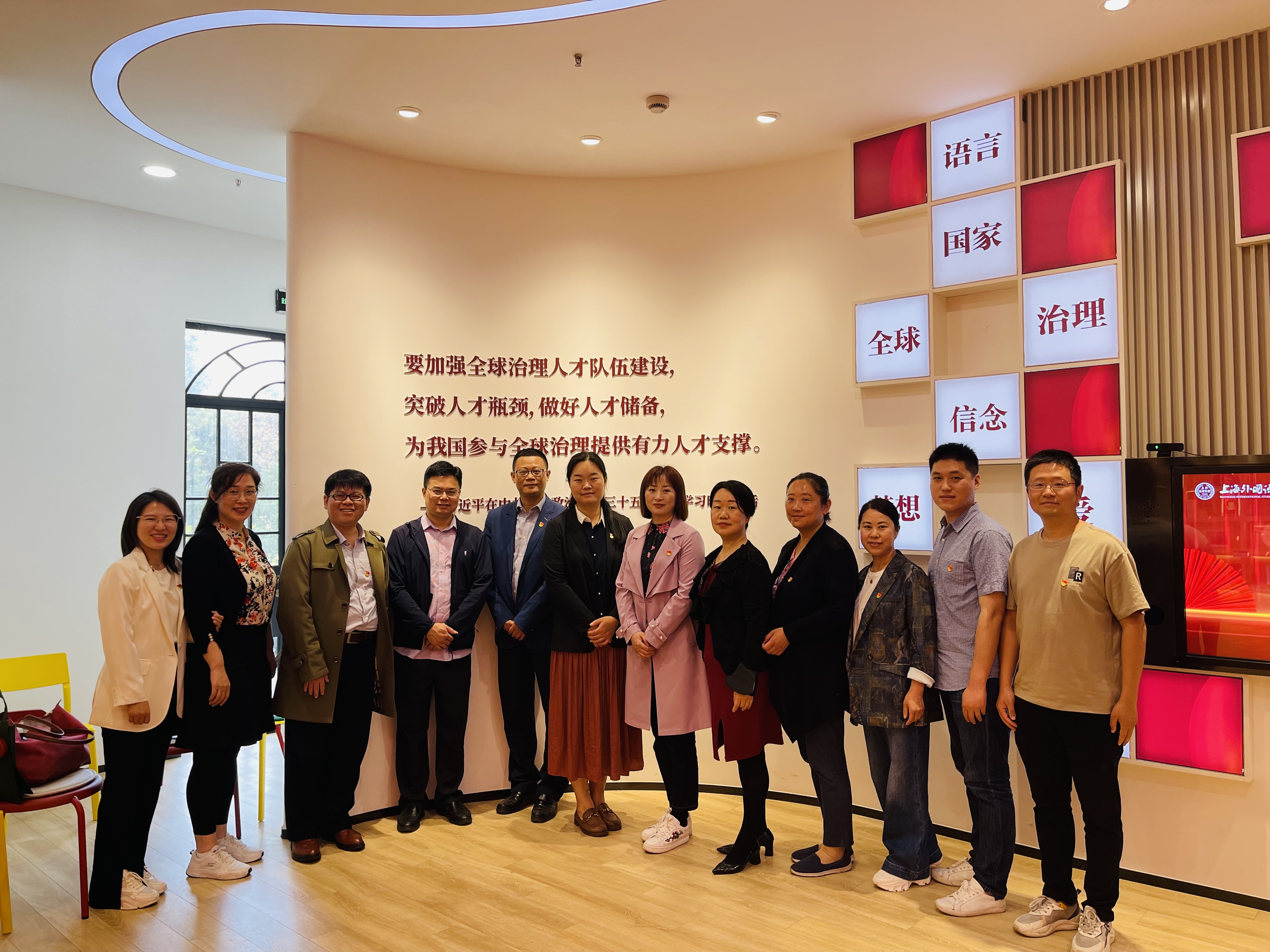 下午,学院一行赴上海对外经贸大学国际商务外语学院和统计与信息学院调研。国际商务外语学院党委书记刘根春,统计与信息学院党委书记刘素贞,国际商务外语学院副院长王玉、单建国、商务英语教工党支部书记胡筱颖等出席调研交流会。上海对外经贸大学国际商务外语学院党委书记刘根春详细介绍了国际商务外语学院的发展历史、师资队伍建设、科学研究和人才培养特色等情况,统计与信息学院党委书记刘素贞以“创标杆 做先锋——卓越党建领航事业发展”为题,从组织建设“堡垒计划”、初心使命“践行计划”、卓越人才“筑梦计划”、重大项目“攻坚计划”四个方面介绍了学院党建标杆院系的工作创新思路和特色做法。双方就如何增强院系党组织政治功能和组织功能、外语课程思政、公共外语教学现状、课程设置和教研团队建设、提升人才培养质量等进行座谈交流和经验分享。会前,在志愿者的带领下,学院一行还参观学习了上海对外经贸大学党建服务中心,参观国际商务外语学院楼,深入了解该学院文化环境布置等做法。