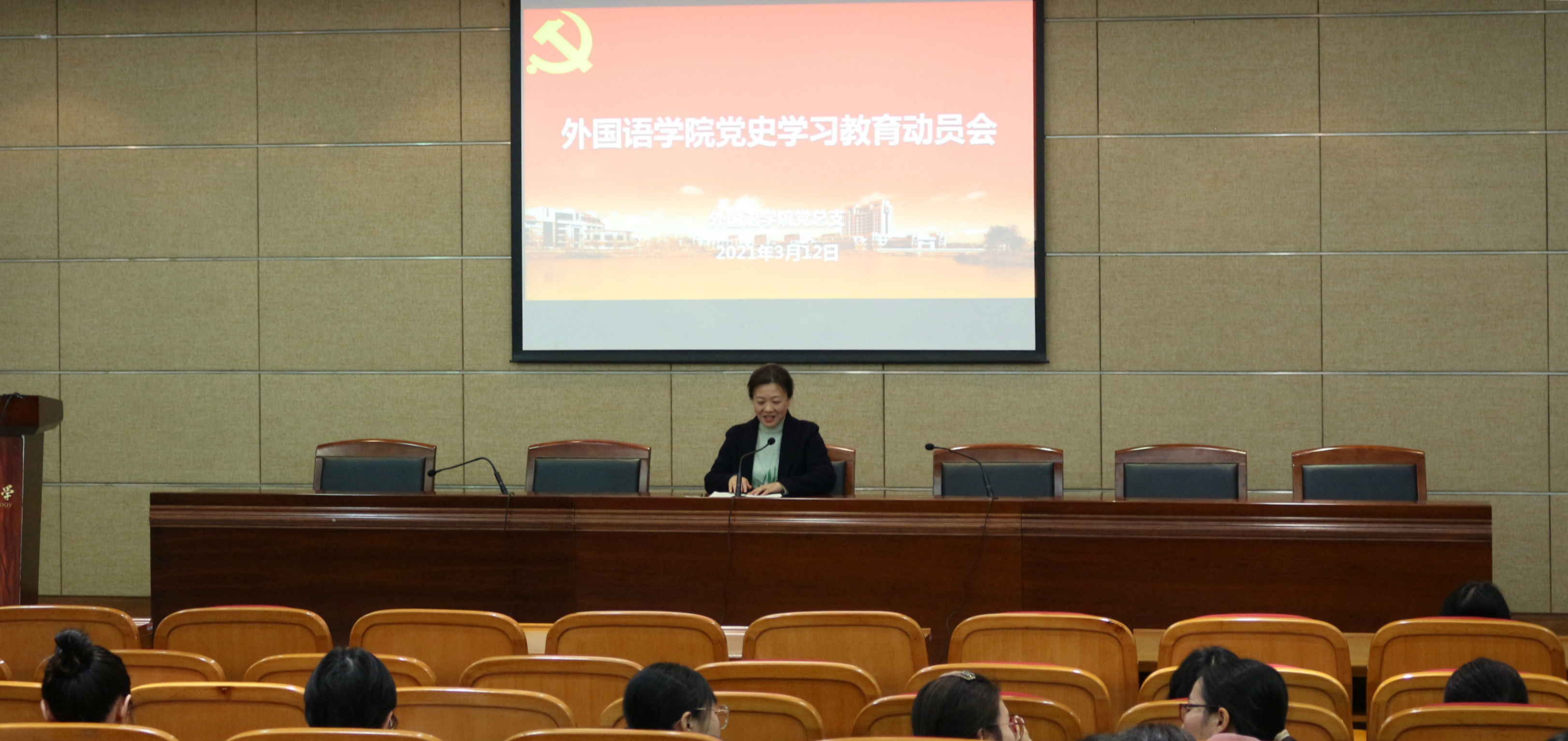 3月12日下午,按照校党委部署和工作要求,外国语学院党总支在图书馆101会议室召开党史学习教育动员大会。外国语学院党总支书记李晓晶认真传达了中央和上海市党史学习教育动员会精神,带领大家学习了校党委书记郭庆松作动员部署讲话精神并作动员讲话。