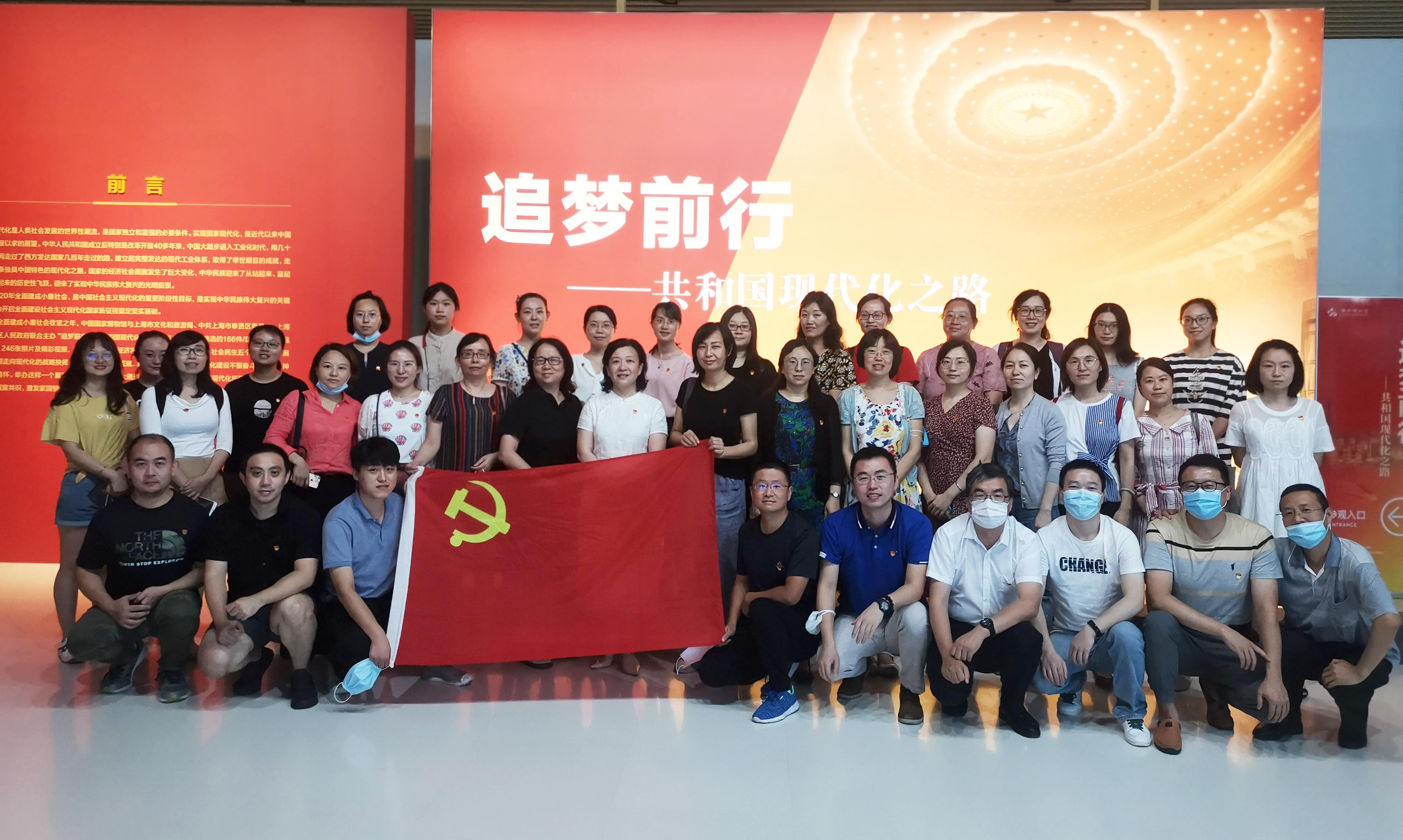 随后,学院全体教职工党员和部分学生党员代表赴奉贤博物馆,参观了“追梦前行——共和国现代化之路”展览,作为一堂生动的“四史”学习教育现场党课。本展览是“四史”教育的鲜活教材,展现了中华人民共和国现代化过程中的战略抉择、发展进程和建设成就,展示中华儿女为祖国现代化建设不懈奋斗的进取精神和感人情怀。