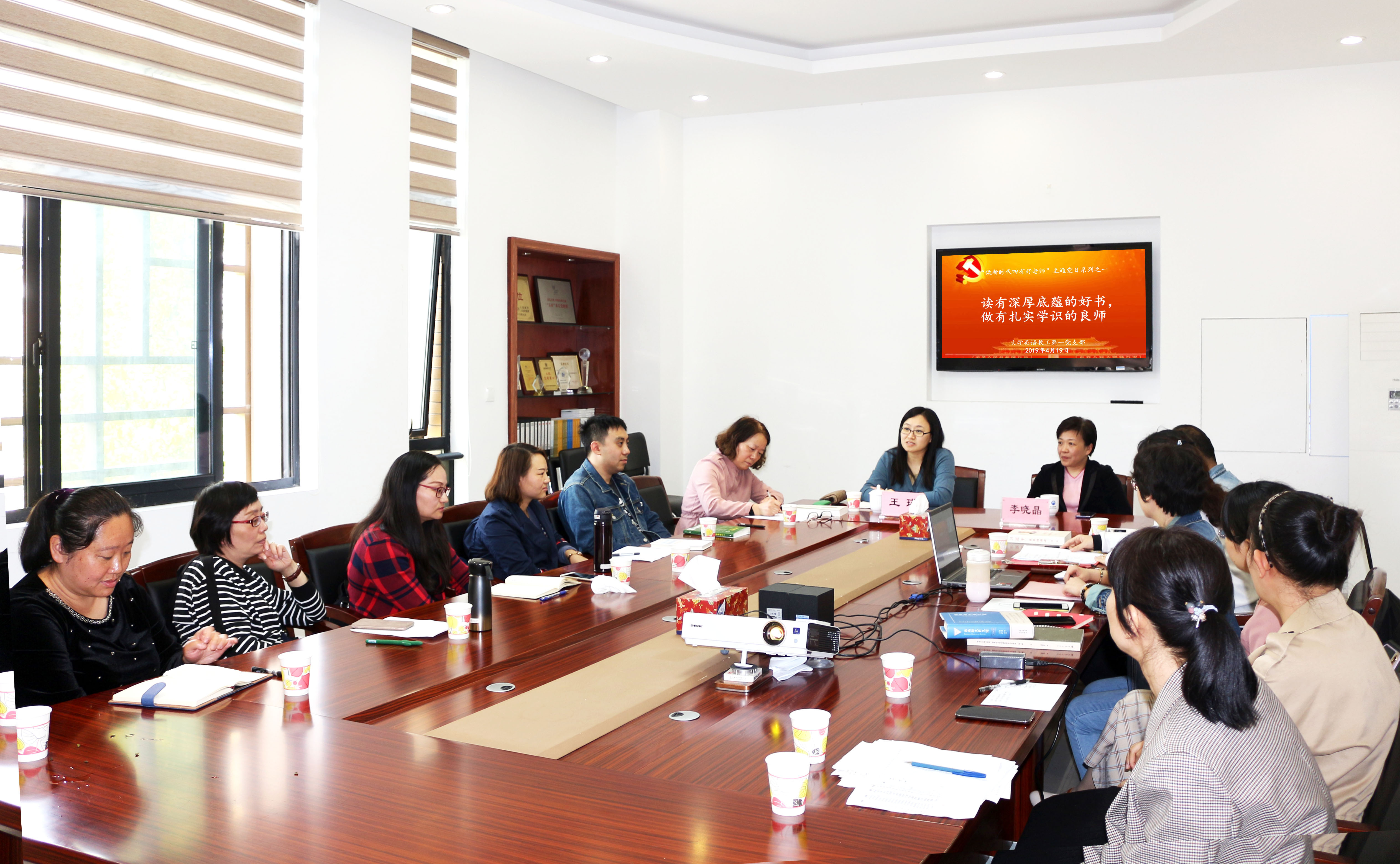 为进一步推进学习型党组织建设,激发党员学习热情,坚定理想信念,响应做新时代四有好老师的号召,大学英语教研一室党支部结合2019“世界读书日”,于4月19日组织开展“读有深厚底蕴的好书,做有扎实学识的良师”主题党日活动。校党委副书记、副校长王瑛应邀出席,我院党总支书记李晓晶及全体支部党员参加活动。