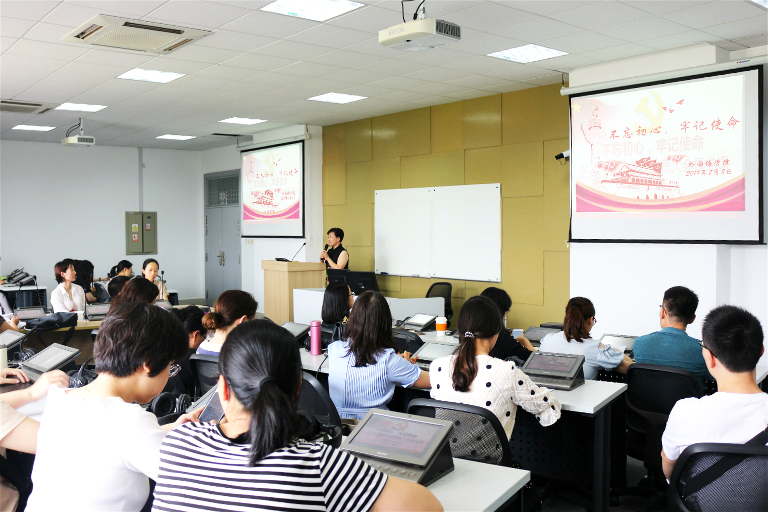 7月8日下午,学院党总支召开了党员大会并举行了“不忘初心,牢记使命”主题党课教育活动。援疆教师刘稳良为全体党员教师做了一场生动的报告。党总支书记李晓晶主持会议。