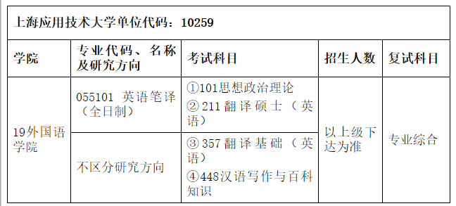 2. 上海应用技术大学外国语学院翻译硕士研究生招生咨询电话:021-60873681(董老师)