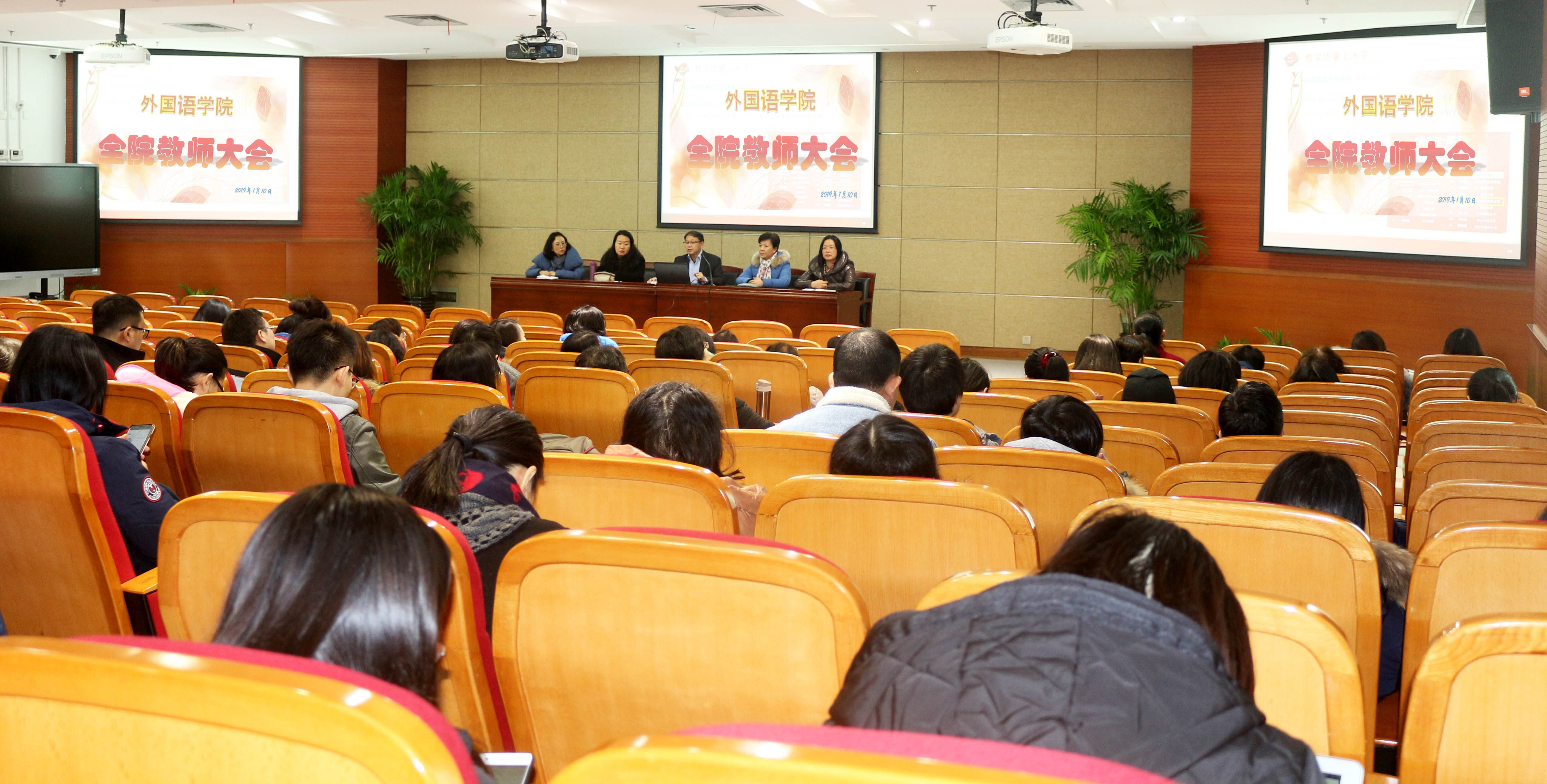 1月10日下午,外国语学院召开了期末全院教师大会,学院党政领导和全体老师参加了会议,党总支书记李晓晶主持。