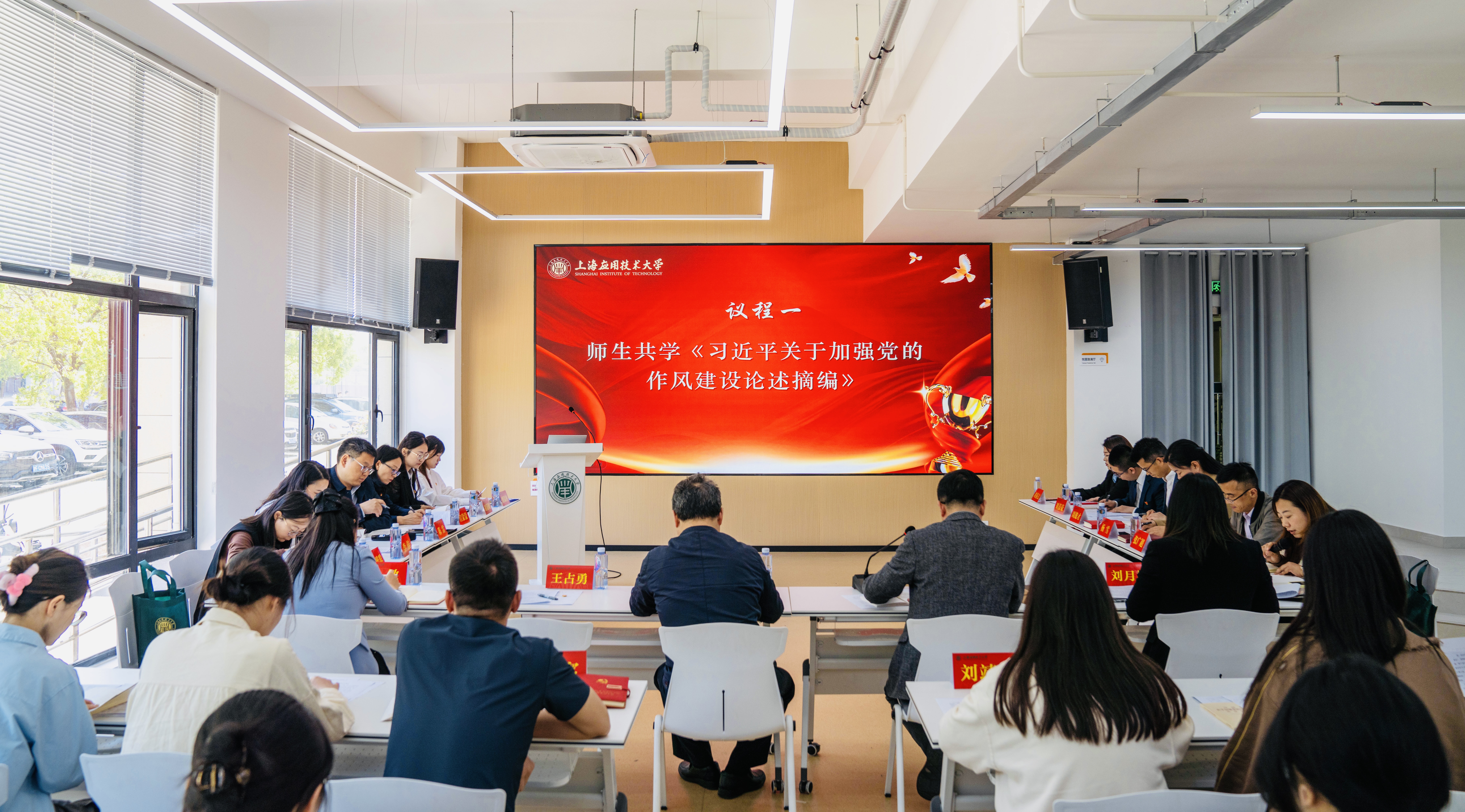 机关第二党支部党员张广超和孔璐领学《习近平关于加强党的作风建设论述摘编》相关内容。国家奖学金获得者理学院学生党员唐晨冉和外国语学院学生党员刘嘉豪依次分享了在“明德、明学、明事”校训精神和“厚德精技,砥砺知行”的上应精神的指引下不断突破自我的学习历程。理学院研究生党员胡嘉敏和外国语学院毕业生党员刘秦文分享他们的求职故事与青春抉择,感谢学校的悉心培养和教师的潜心培育,让他们在青春求职路上勇敢追求。