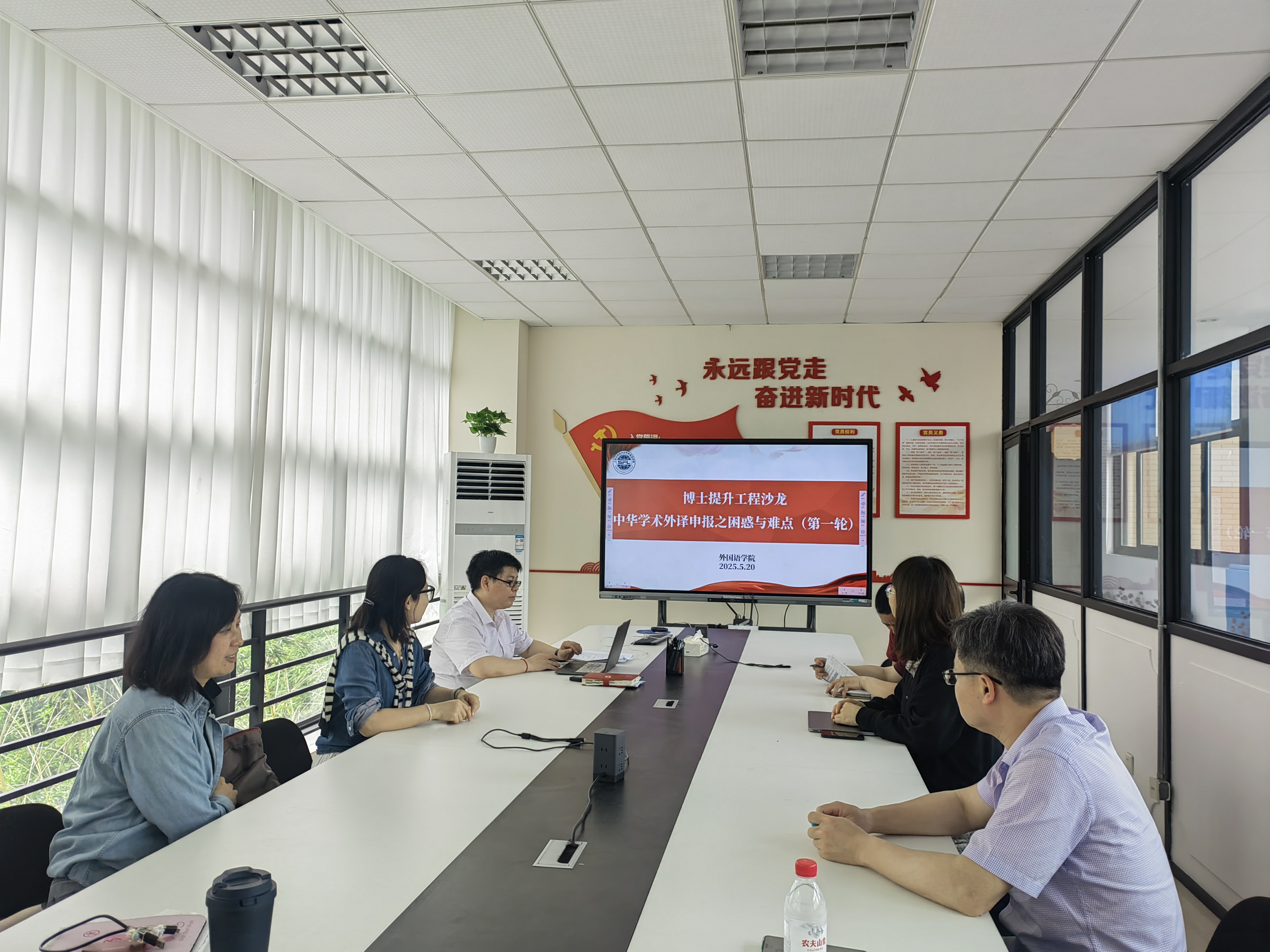 为助力全院教师更好地开展中华学术外译项目申报工作,5月20日下午,外国语学院在五科多功能会议室举办了“博士提升工程”专题沙龙活动。本次沙龙以“中华学术外译申报之困惑与难点”为主题,吸引了学院诸多教师积极参与。