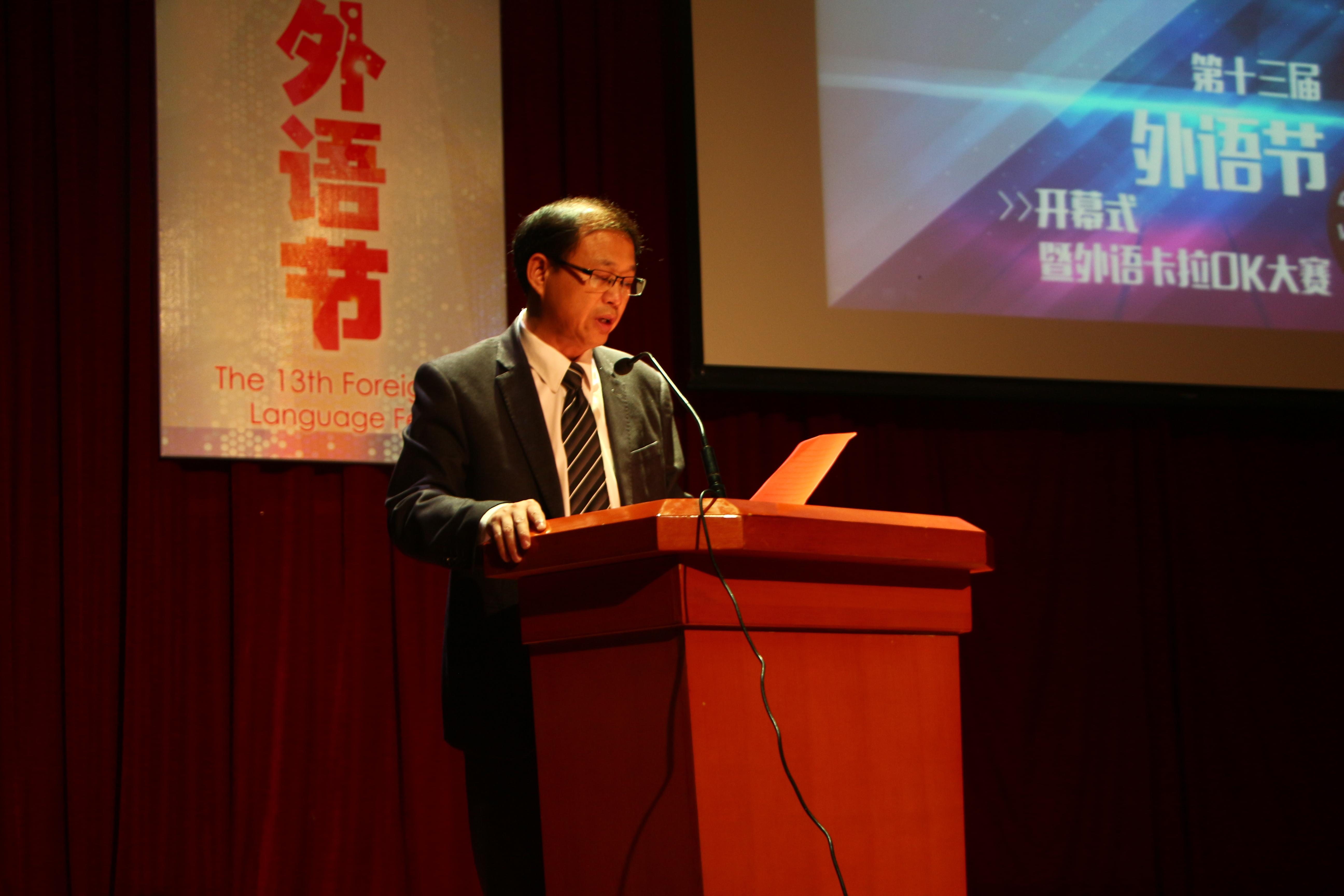 10月25日,由学工部、团委主办,外国语学院承办的,以“品外语魅力,扬青春风采”为主题的第十三届外语节开幕式暨外语卡拉OK大赛隆重举行。外国语学院院长陈家旭,校团委书记、学工部副部长、学生处副处长张化,外国语学院副院长于静,香料学院副书记、副院长陈翔、外国语学院副书记、副院长金丽华,外国语学院英语系主任程庆华,外国语学院德语系副主任梁黎颖,外国语学院德语专业老师徐琴琴,大学英语教学部老师杨卉莅临现场。各二级学院学生会主席、文艺部部长和同学们出席了本次活动。