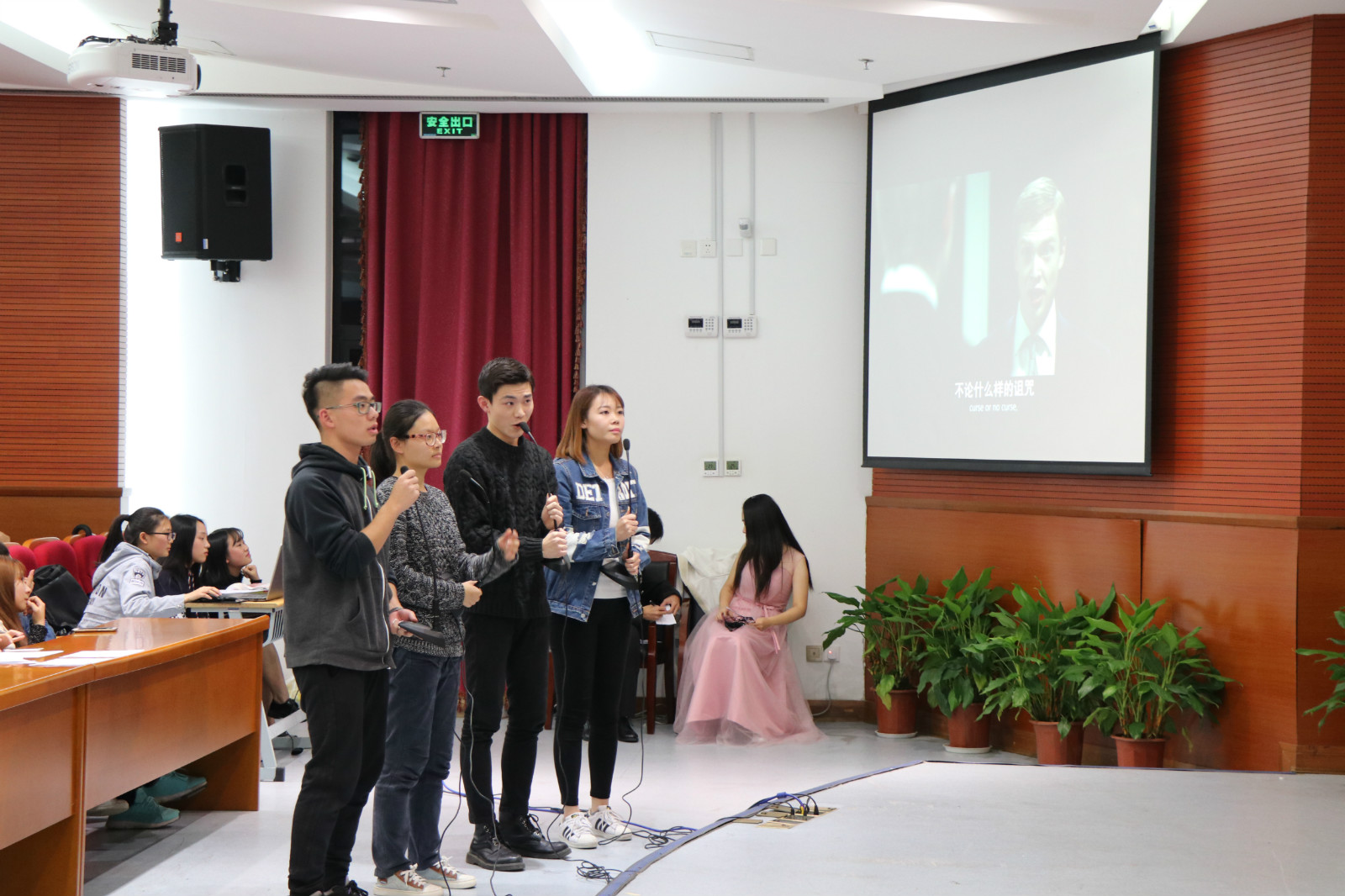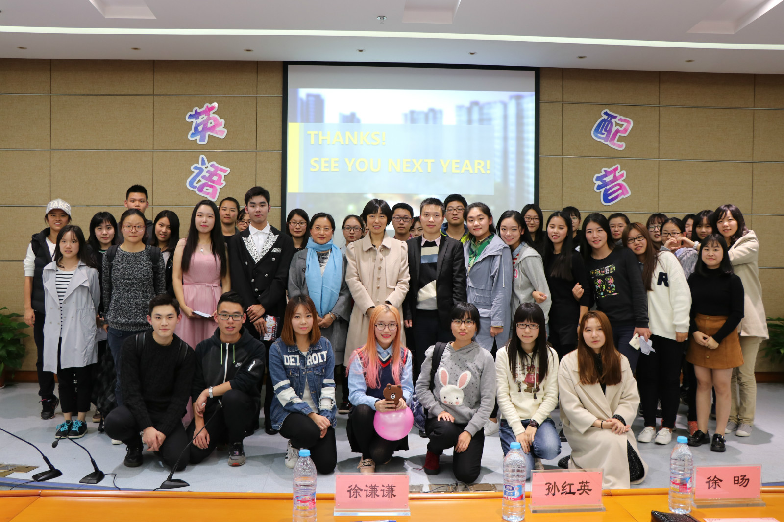 11月16日晚,外国语学院于图书馆B101举办了第十三届外语节英语电影配音大赛。大学英语教学部徐谦谦老师、外国语学院英语系孙红英老师以及德语系徐旸老师担任本次比赛的评委。