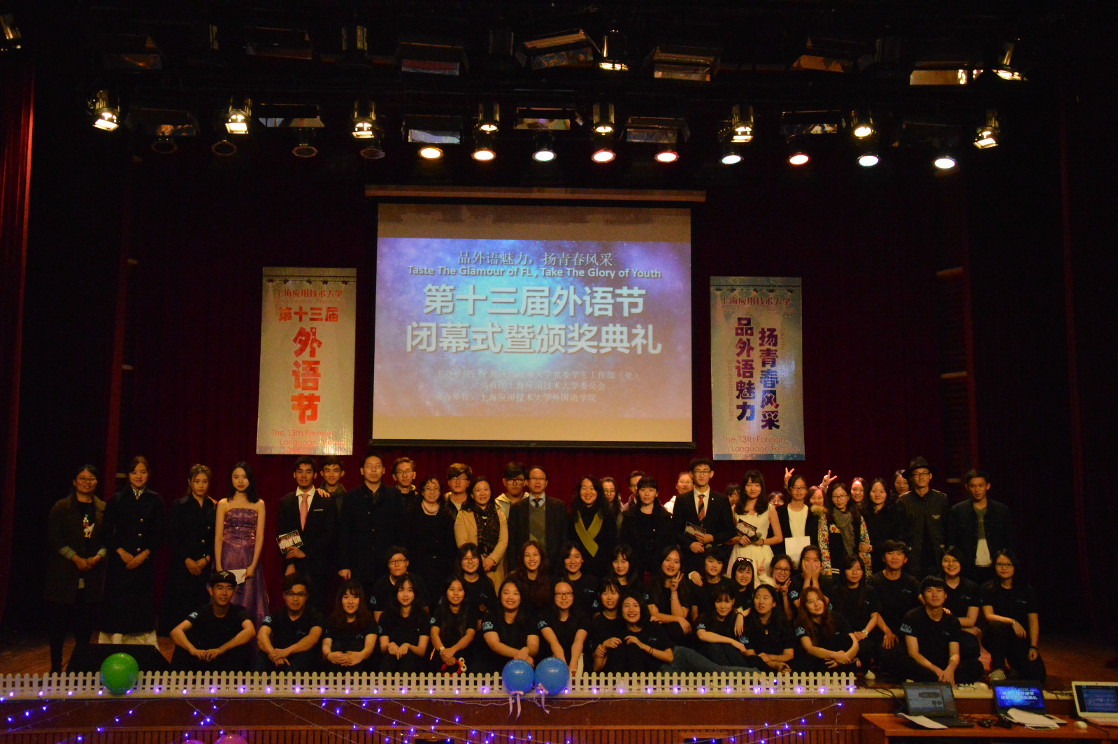 11月25日,外国语学院在大活多功能厅举办“品外语魅力,扬青春风采” 2016年上海应用技术大学第十三届外语节闭幕式暨颁奖典礼。上海应用技术大学校长陆靖,外国语学院院长陈家旭,外国语学院党总支书记李晓晶,外国语学院副院长于静,外国语学院党总支副书记、副院长金丽华以及校团委、外国语学院系(部)负责人出席本次颁奖典礼。