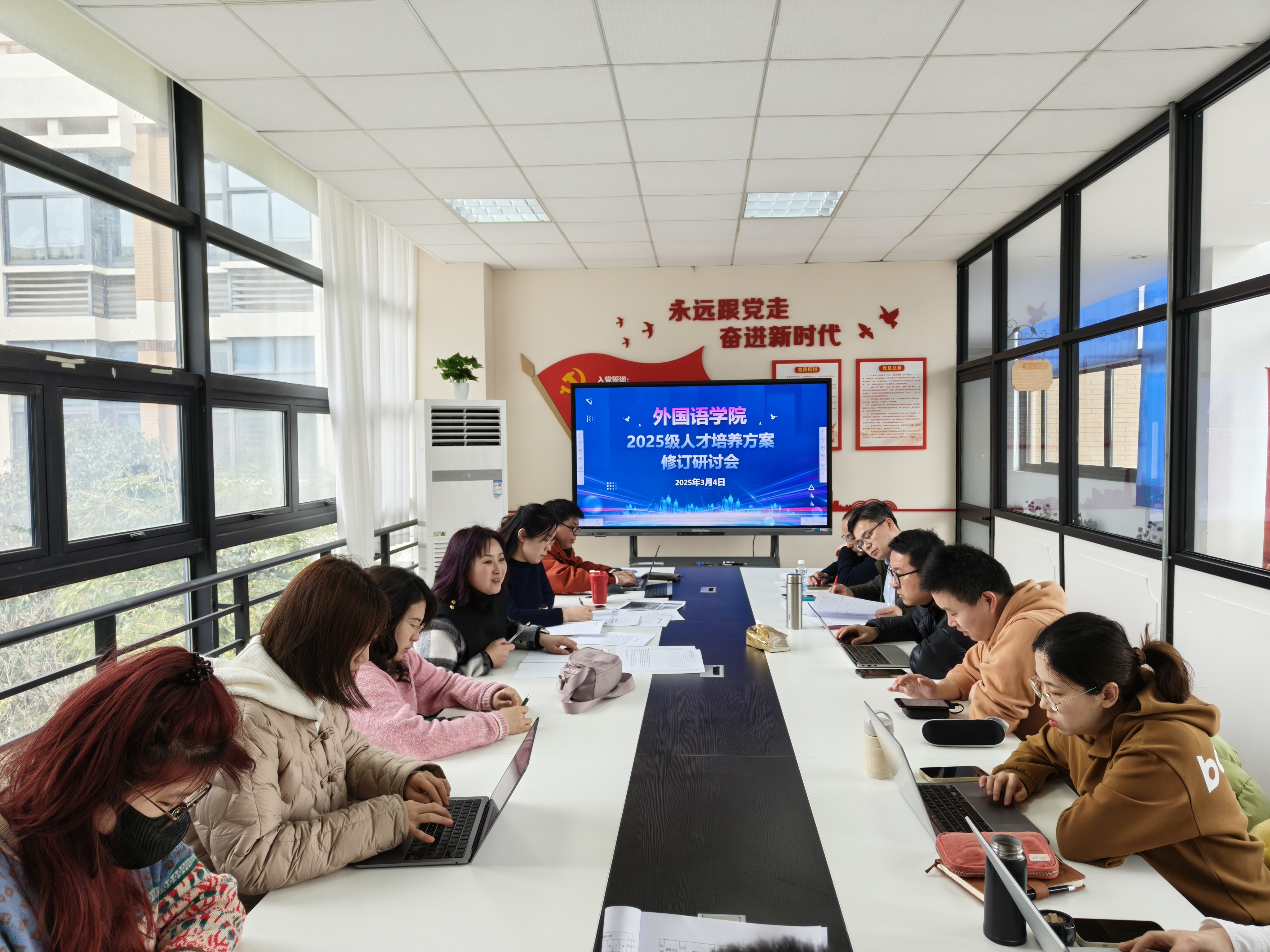 为全面落实深化我校综合改革方案,有序、有力地推进应用型人才培养模式改革,深化落实产教融合协同育人和人工智能(AI)赋能专业建设,进一步提升人才培养质量,3月4日外国语学院召开了2025级培养方案修订研讨会。会议由外国语学院副院长迟娟主持,学院党委副书记、院长潘智丹、副院长叶湘、各专业教研室主任、副主任、骨干教师及教学管理人员参加了此次研讨会。