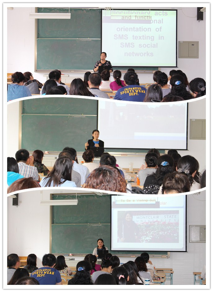 针对自己的项目,三位老师分别作了简要报告。陈洁的项目“Illocutionary acts and functional orientation of SMS texting”《手机短信的语言学功能分析》,主要从语言学角度分析手机短信的各种交际功能以及短信语言中的“弦外之音”。薛梅的《多元文化多语言教学》项目,研究了英语作为第二语言和外语的教学理论和方法,及英语语言测试过程和标准,探讨了影响测试信度和效度的各方面因素。陈朝晖的“A Comparative Study of Teaching Intercultural communication in SIT and MSU",将我校与蒙特克莱尔州立大学的跨文化交际教学进行了多角度的对比,并探讨了适合我校教学的方式和方法。会上,各位老师也就各自的兴趣点进行了深入地交流。