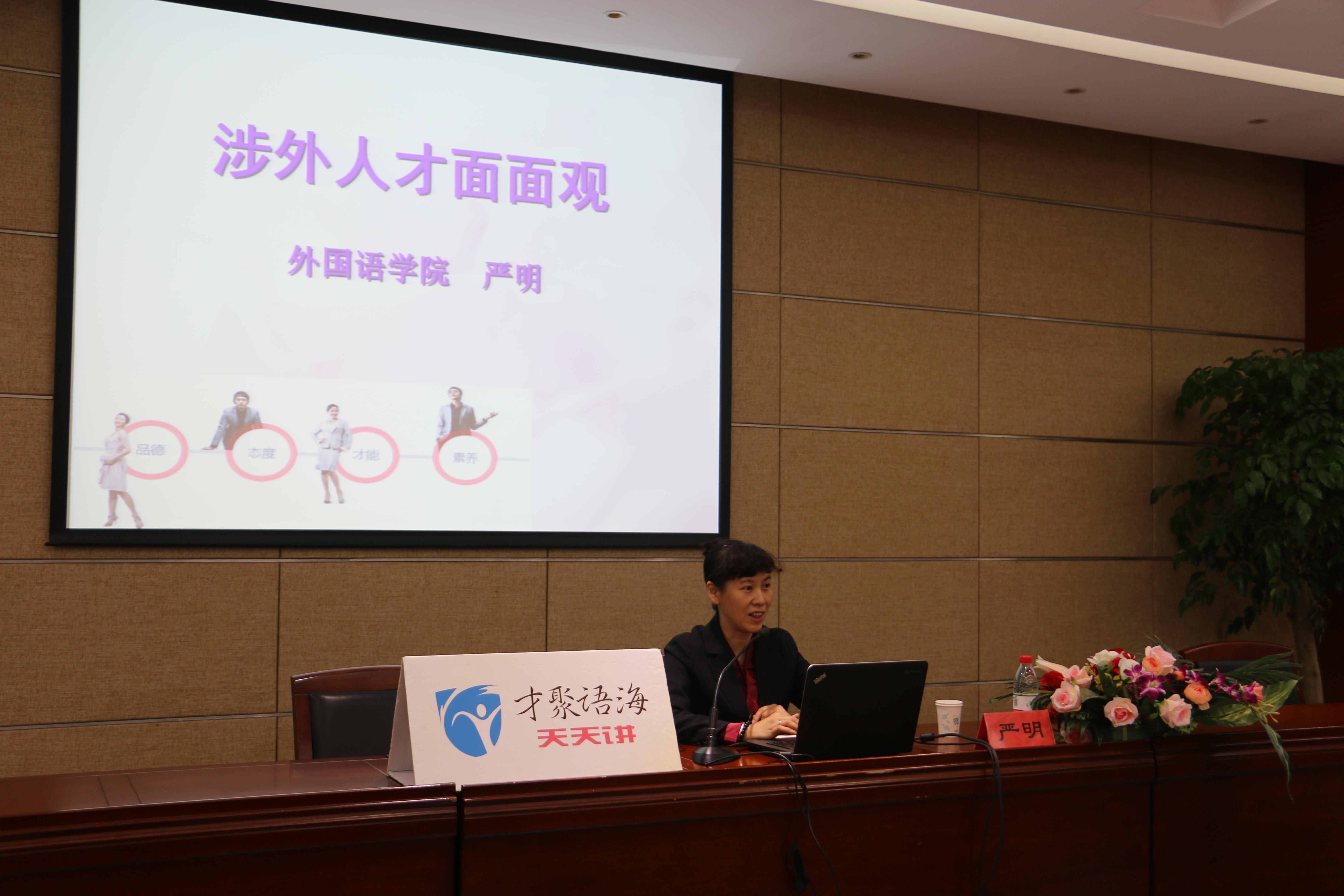 10月28日晚,外国语学院于图书馆B101举办“涉外人才面面观”讲座。外国语学院副院长严明担任本次讲座主讲人。