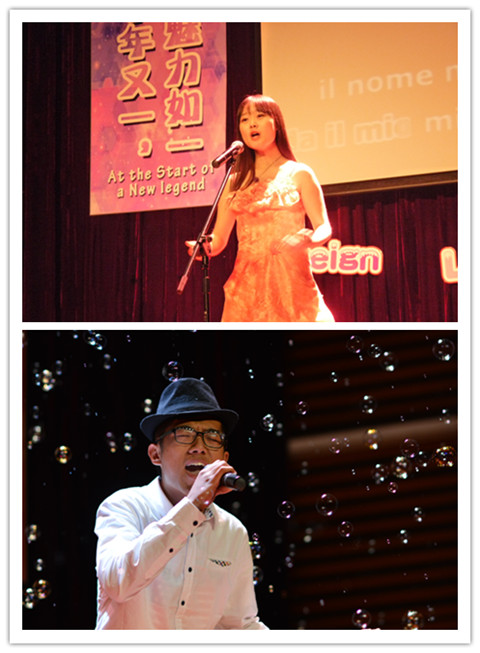 校D-zone街舞社团激情献舞,正式拉开了外语节开幕式暨外语卡拉OK大赛的序幕,校党委学工部副部长朱美陶致开幕辞,外国语学院副院长严明宣布外语节开幕。接着13组选手共同带来的歌曲串烧调动了大家的情绪,在比赛环节选手们表现出不凡的实力,用美妙的歌声带领大家在异域风情中徜徉,比赛现场掌声不断。经过激烈的角逐,来自经管学院的李昕昊和外国语学院的朱珊莹分别以一曲《I want it that way》和英文版《今夜无人入眠》,受到了评委们和同学们的青睐,获得冠军;轨交学院陈鸿源和外国语学院陈杨获得亚军;化工学院乐心隽,徐文佳和外国语学院邱晟天获得季军。