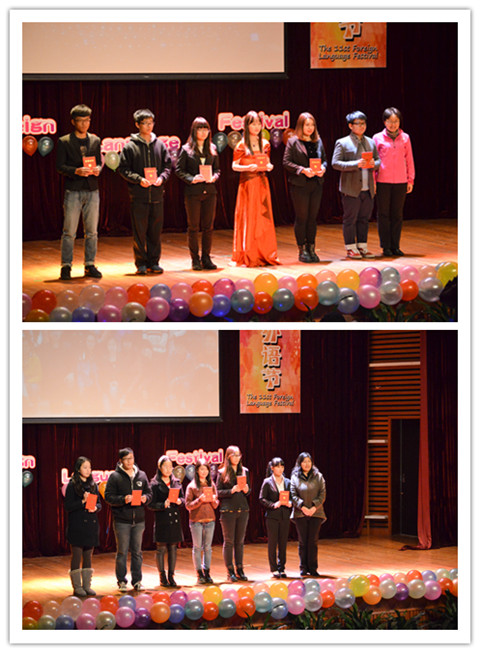 外国语学院全体团总支、学生会干部带来的开场舞《叮铃铃》青春飞扬、动感十足,拉开了活动序幕。张艳萍为闭幕式致辞,她首先祝贺外语节取得圆满成功,肯定了外语节的积极意义,并鼓励同学们积极学好外语。随后,各位嘉宾为外语节系列活动的获奖者颁奖。部分选手进行了风采展示,让我们重温了外语节的精彩节目。接下来的“party time”环节,点燃现场激情。炫酷高难度的街球表演赢得阵阵掌声;悠扬婉转的小提琴伴奏《夜半小夜曲》搭配舞者的灵动舞姿让人沉醉;小品《不差钱》幽默搞笑,现场欢笑声不绝于耳;卡拉OK大赛获奖者朱珊莹带来的德语美声独唱宛若天籁,收获好评。穿插其中的抽奖环节同样活跃了现场气氛。最后,本次活动在热烈的掌声中落下帷幕。