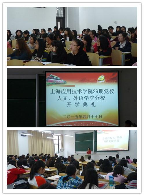 4月17日下午,上海应用技术学院29期党校人文、外语学院分校开学典礼在二教E103举行。分党校校长韩磊,分党校副校长金丽华、张小懿出席此次活动。典礼由金丽华主持。