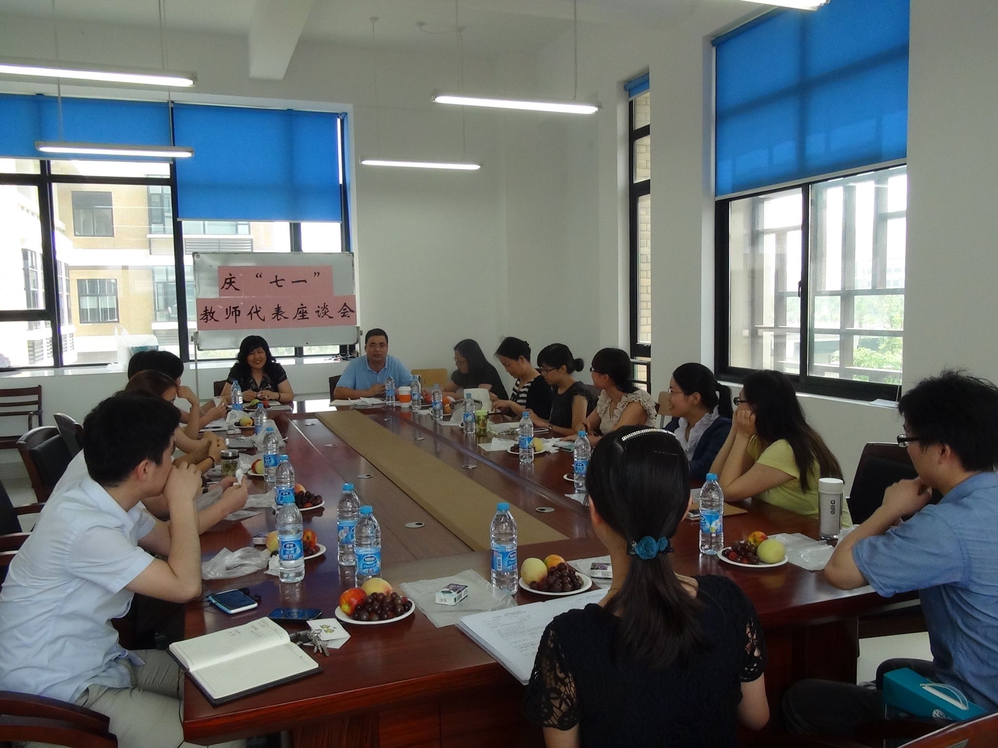 在党的92周岁华诞之际,为向党的生日献礼,同时为进一步深入领会党中央“中国梦”伟大构想内涵的精神实质,以“中国梦 我的梦”为主题,7月1日,外国语学院党总支组织举办庆“七一”教师代表座谈会。