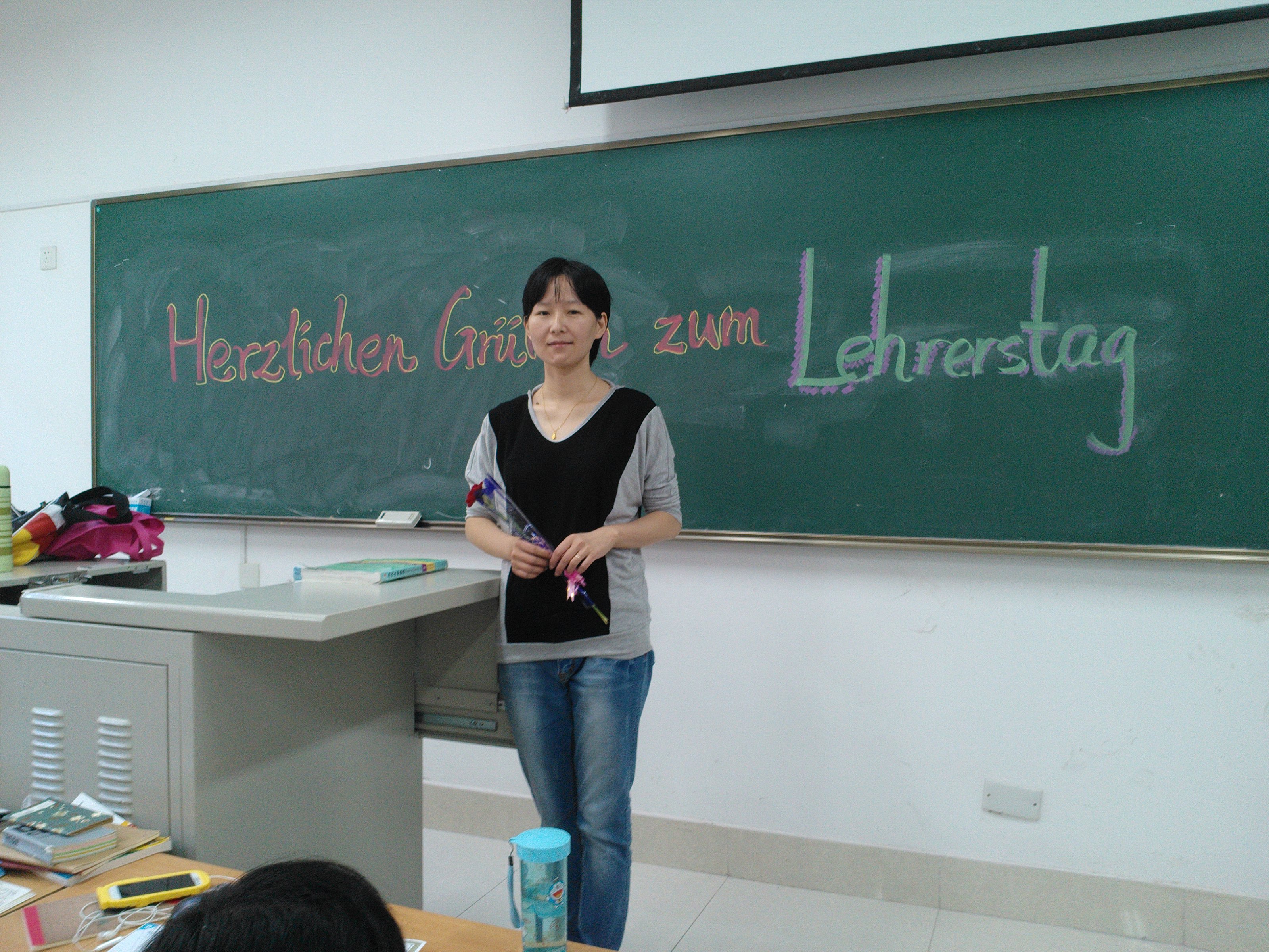 在外国语学院大二英语一班里,同学们派出学生代表为老师奉上了那最新鲜最娇艳的花束以及递上了写满祝福的温暖小纸条。而在大二德语二班里,文艺委员则是提前在黑板上写下了“祝老师教师节快乐”,德语老师走上讲台发现了那一行充满爱意的教师节祝福后,露出了欣慰的微笑,老师对班长表示感谢,班里洋溢着温馨与那份浓浓的师生情谊挥之不去。