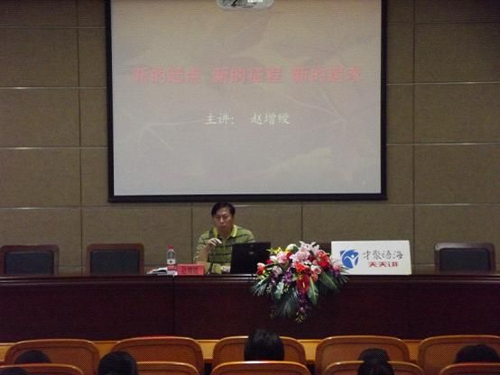9月25日下午3:00,外国语学院在图书馆B102报告厅举办天天讲——新的起点、新的征程、新的追求。主讲人是我校离退休党务职工赵增绶老师,外国语学院副书记、副院长赵慧出席并主持讲座。
