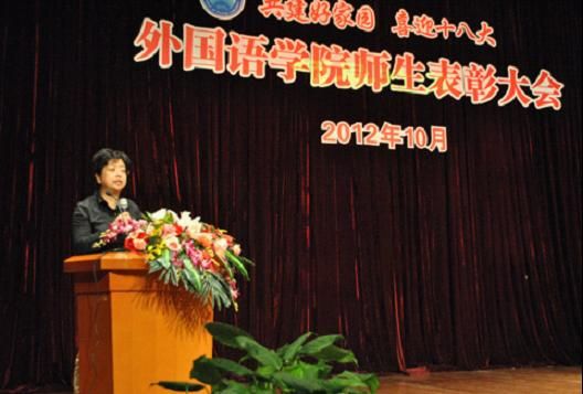 10月12日下午,外国语学院举行“共建好家园,喜迎十八大”师生表彰大会,校党委副书记、纪委书记宋敏娟出席大会并致辞,外国语学院全体党政班子成员,全体教师和学生参加了大会。