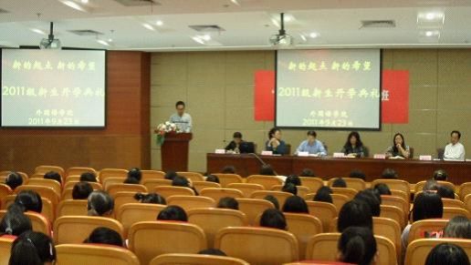 9月23日,外国语学院2011级新生开学典礼在奉贤校区图书馆B101隆重举行,96名本科新生以及49名专升本新生参加。外国语学院院长陈家旭、外国语学院党总支书记张淑梅、副书记副院长赵慧、副院长孙志青、英语教研室主任钟玲教授、德语教研室主任陈明浩教授以及所有新生班导师出席典礼。
