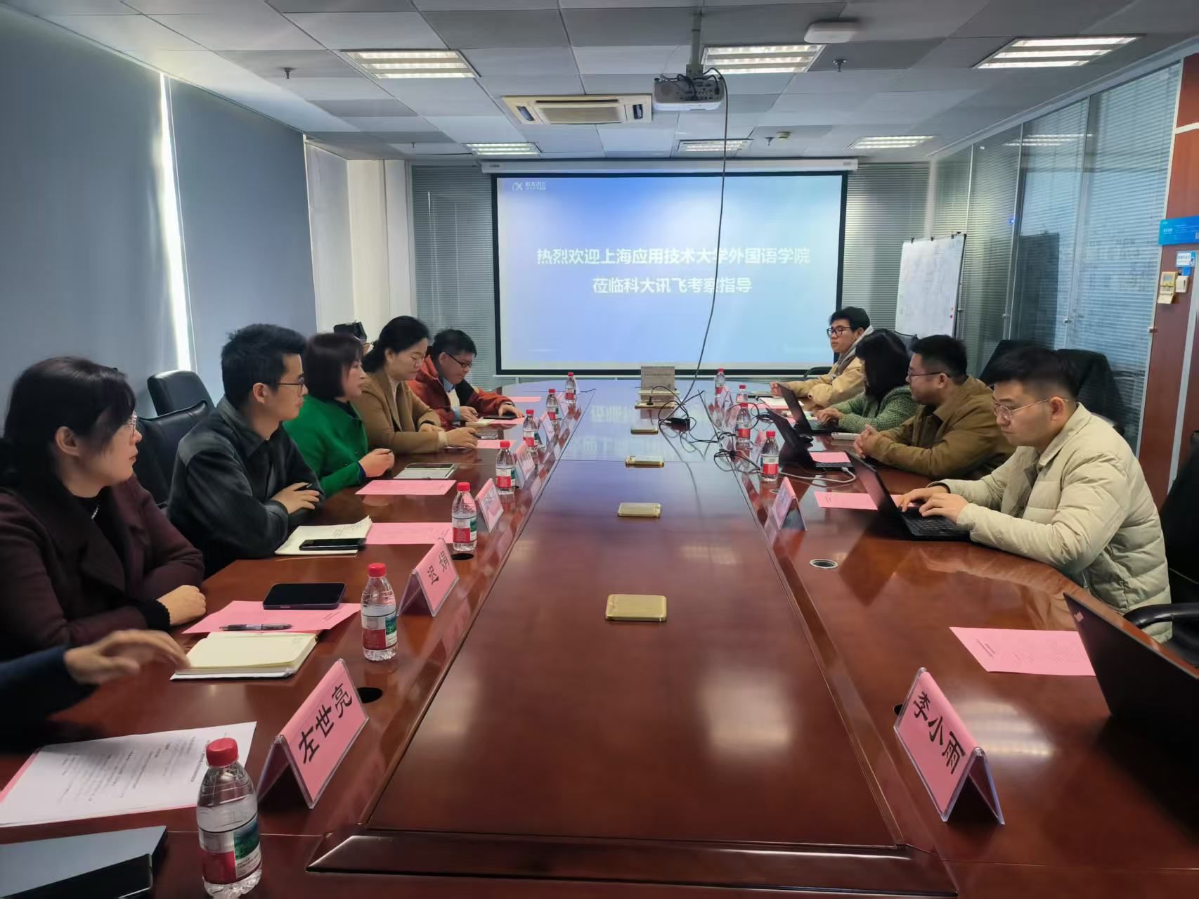 为深化产教融合实效,推动AI与外语学科融合发展,推进复合型外语人才培养与学生实习就业合作协同发展,11月19日,外国语学院党政班子一行赴科大讯飞开展访企拓岗专题调研,科大讯飞AI资源部渠道总监成程、聆智产教融合研究院课程设计负责人朱光吉、聆智产教融合研究院中级校园运营经理詹丽君等相关负责人参加座谈交流。