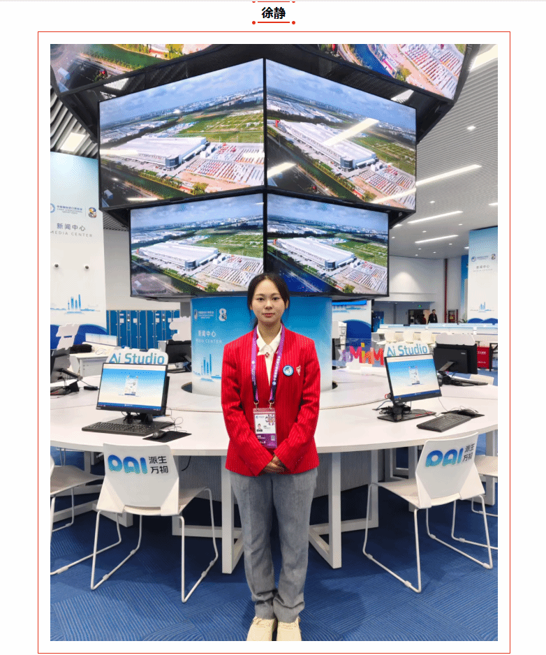 在这里,我向媒体展示的,不仅是前沿AI技术赋能下的进博智慧与高效;我所传递的,更有中国青年开放包容、自信从容的精神风貌。我见证了一场场新闻的诞生,也亲历了自己从青涩到笃定的完美蜕变。无比荣幸,我的“小叶子”初体验,能与世界的故事在此交汇碰撞。衷心期盼未来,能与进博再赴之约,与更广阔的世界温暖相逢!