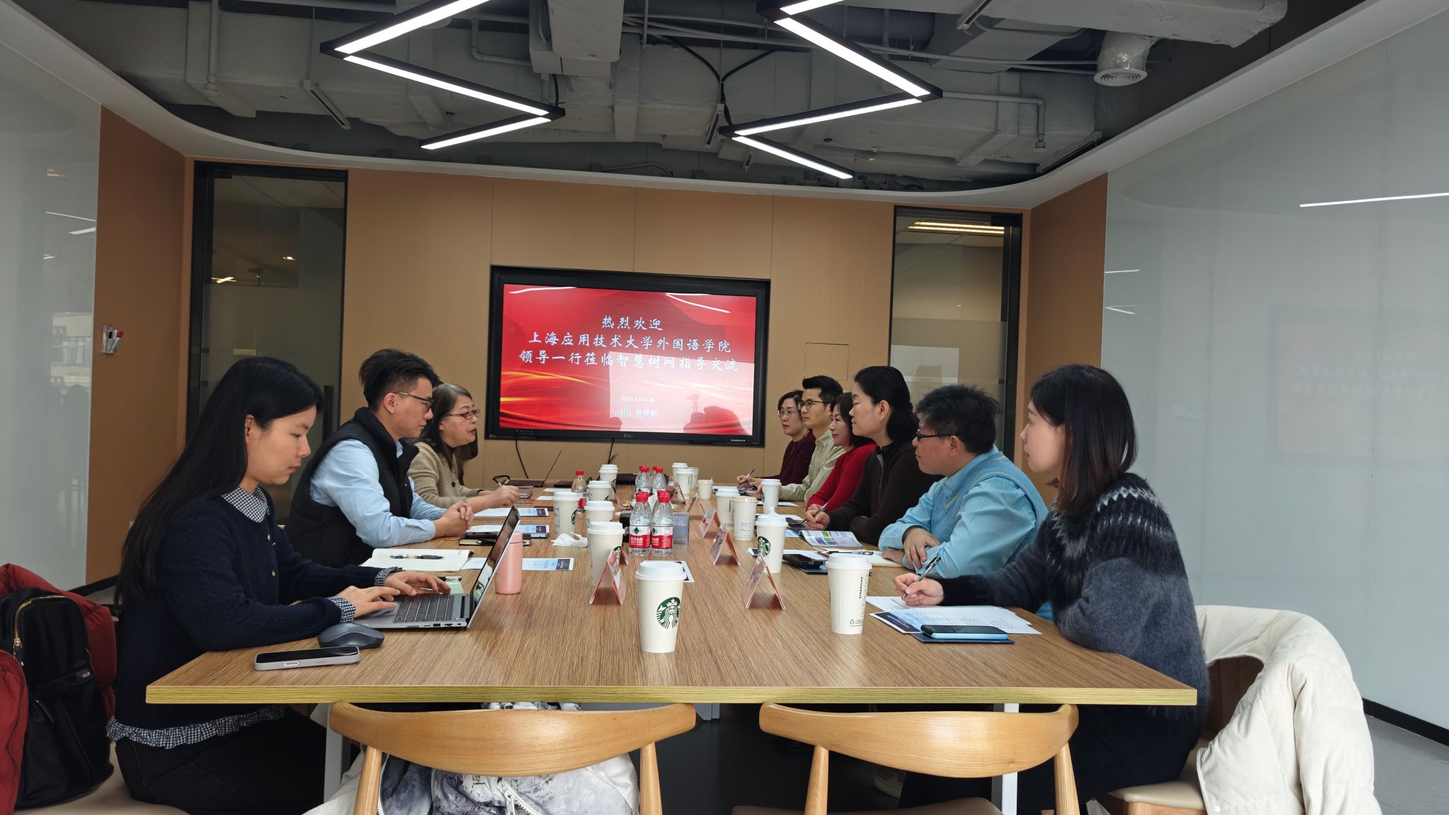 智慧树网副总裁朱霞梅、上海区域经理孙峥嵘等热情接待。朱霞梅介绍了智慧树网的发展历程、企业文化以及其在在线教育领域的卓越成就。相关负责人介绍了人工智能驱动下的专业建设与课程升级、微专业共享运行和全景教学空间,并结合具体案例讲述了公司如何帮助高校深化教学改革,提升人才培养质量。