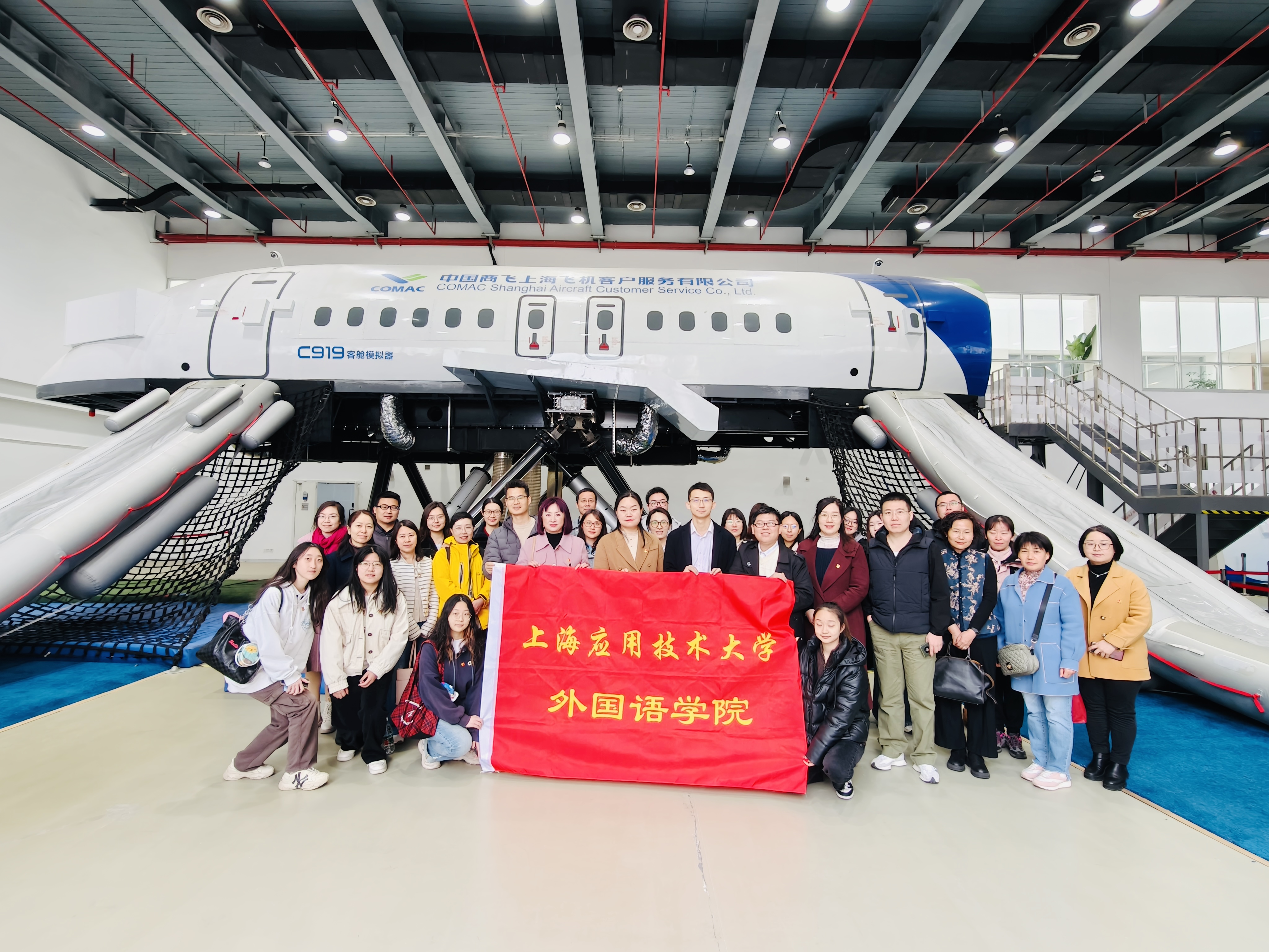 师生一行还参观了中国商飞运行支持指挥中心。全球航线数据实时跃动的“科技之网”,展现着大飞机精神在新时代的传承——从“闭门造车”到“开放协作”,从“技术跟跑”到“标准领跑”。相关负责人通过操作页面,详细讲解了飞机的起飞流程、航线开通、飞行路径及动画监测等内容。C919突破的不仅是技术壁垒,更是跨文化协同创新的范式。这对学院培养精通专业外语、熟悉国际规则、能讲好中国技术故事的复合型人才具有重要启示。在进入C919动态乘务舱及模拟机的体验中,还学习了飞机应急处理机制及安排策略,深切感受到科技创新的重要性。