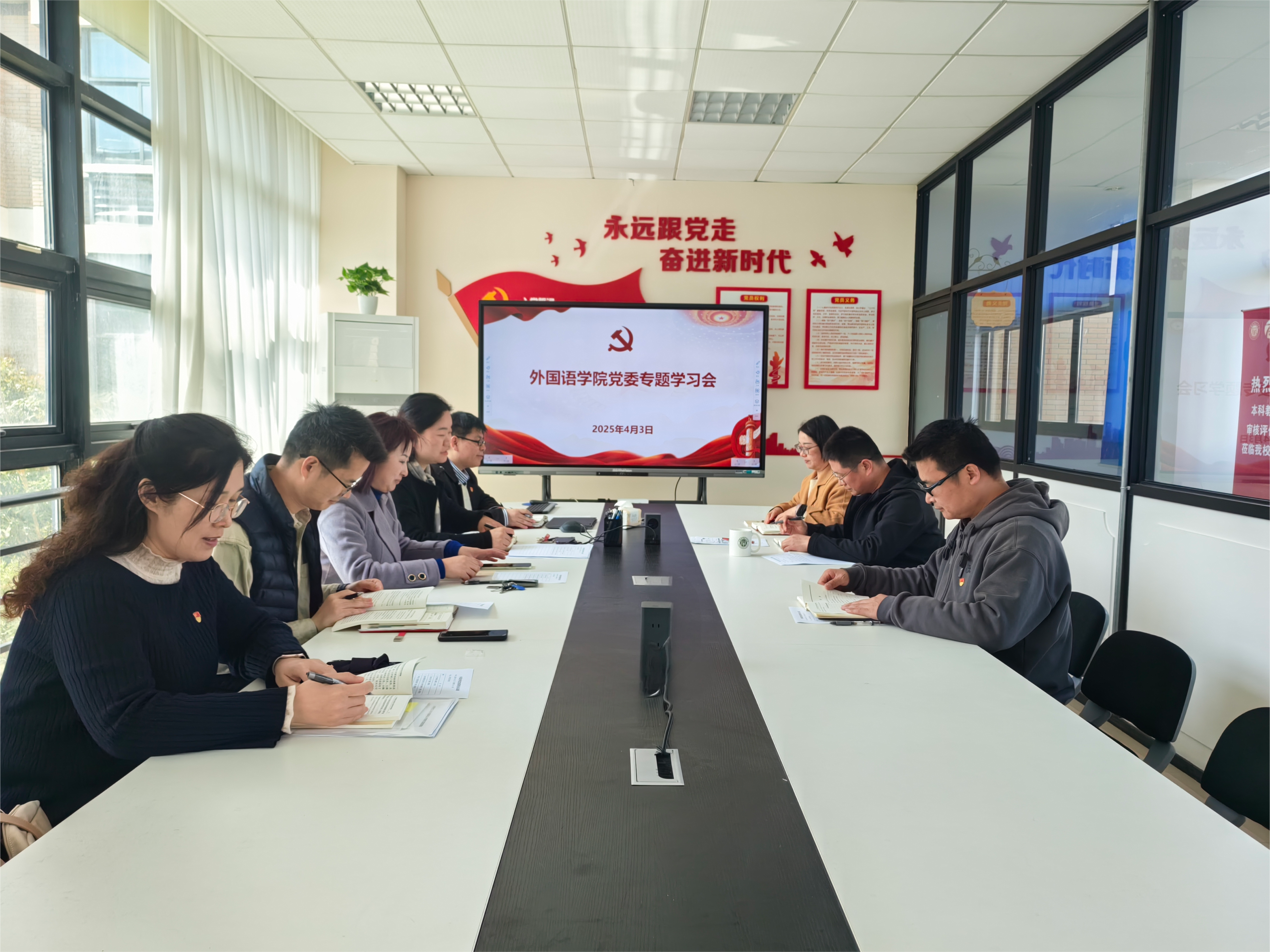 近日,外国语学院党委组织开展深入贯彻中央八项规定精神学习教育专题学习会,深入学习领会习近平总书记关于加强党的作风建设的重要论述和中央八项规定精神。学院党委理论学习中心组成员、党政班子成员、党委委员、党支部书记参会,会议由外国语学院党委书记杨雪主持。