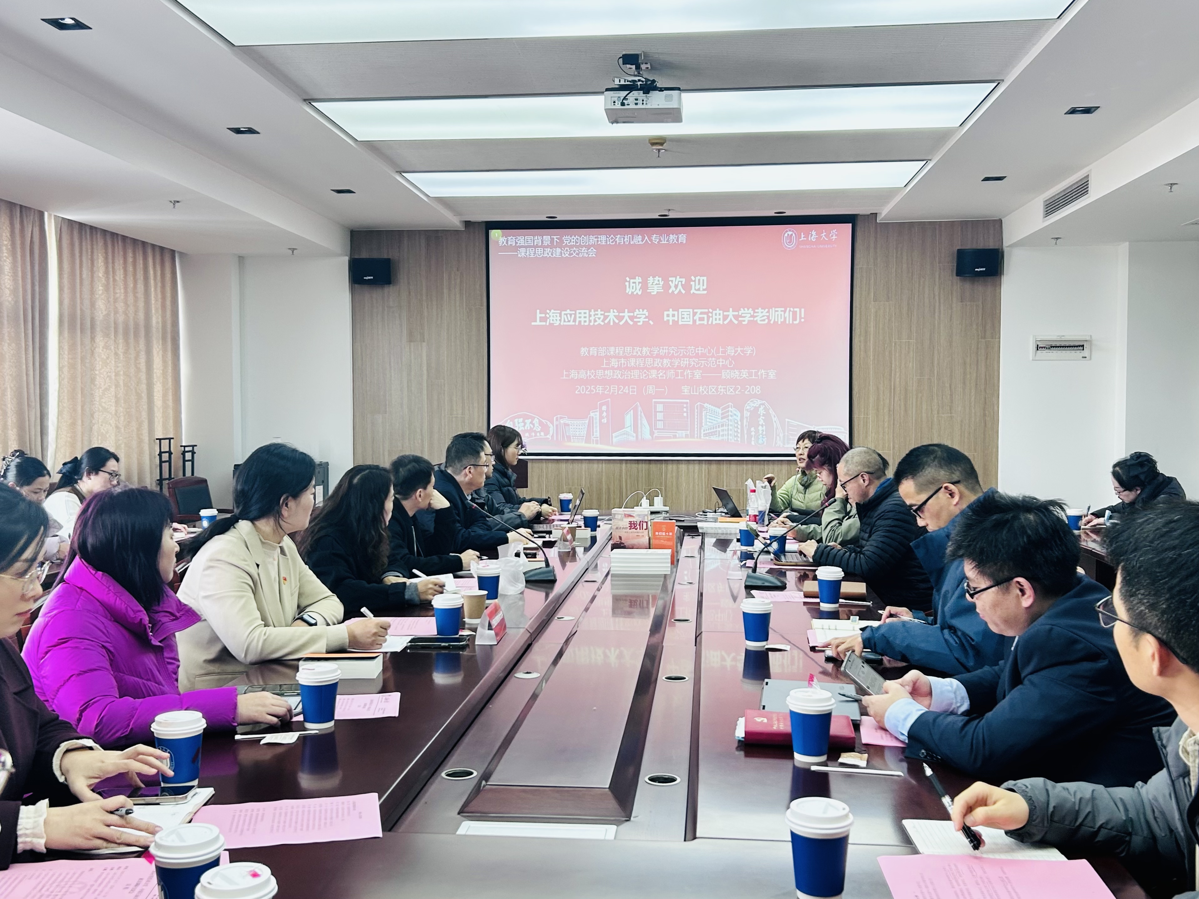 2月24日下午,外国语学院党政班子、党支部书记、校公共基础课程思政教学研究分中心成员一行22人,赴上海大学——上海高校思想政治理论课名师工作室“顾晓英工作室”调研学习。校党委教师工作部副部长吴晶晶、理学院部分课程思政骨干教师一同随行参加。