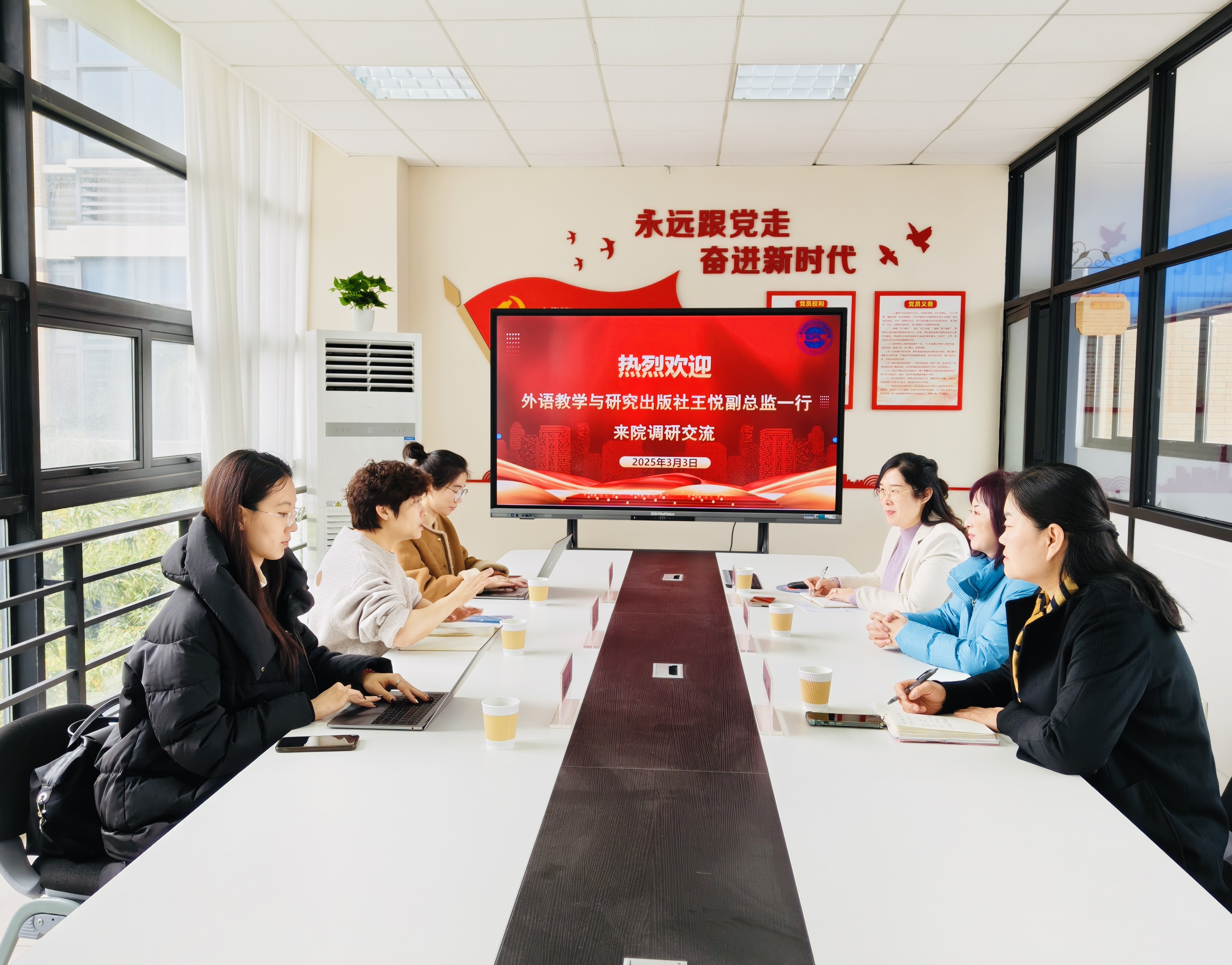 3月3日,外语教学与研究出版社副总监王悦一行来访外国语学院,就深化双方在课程建设、教学改革、教学平台使用等方面进行合作探讨。外国语学院党委副书记、院长潘智丹、党委书记杨雪及副院长迟娟参会交流研讨。